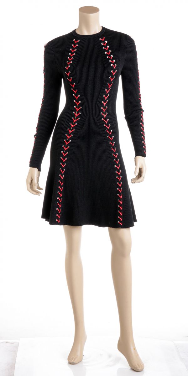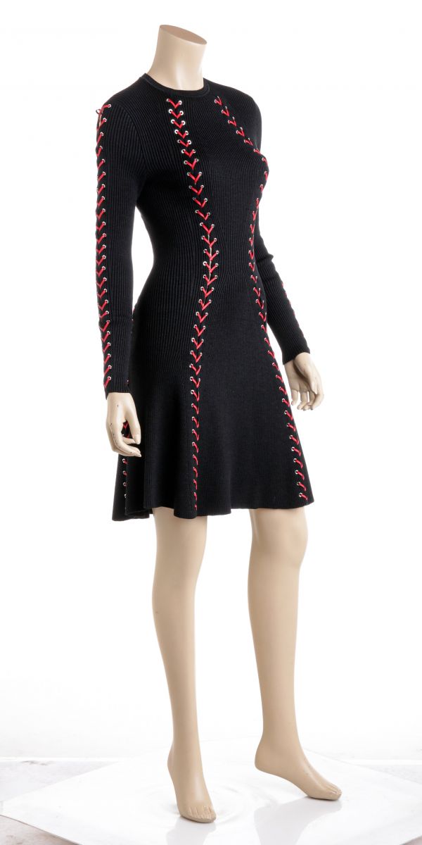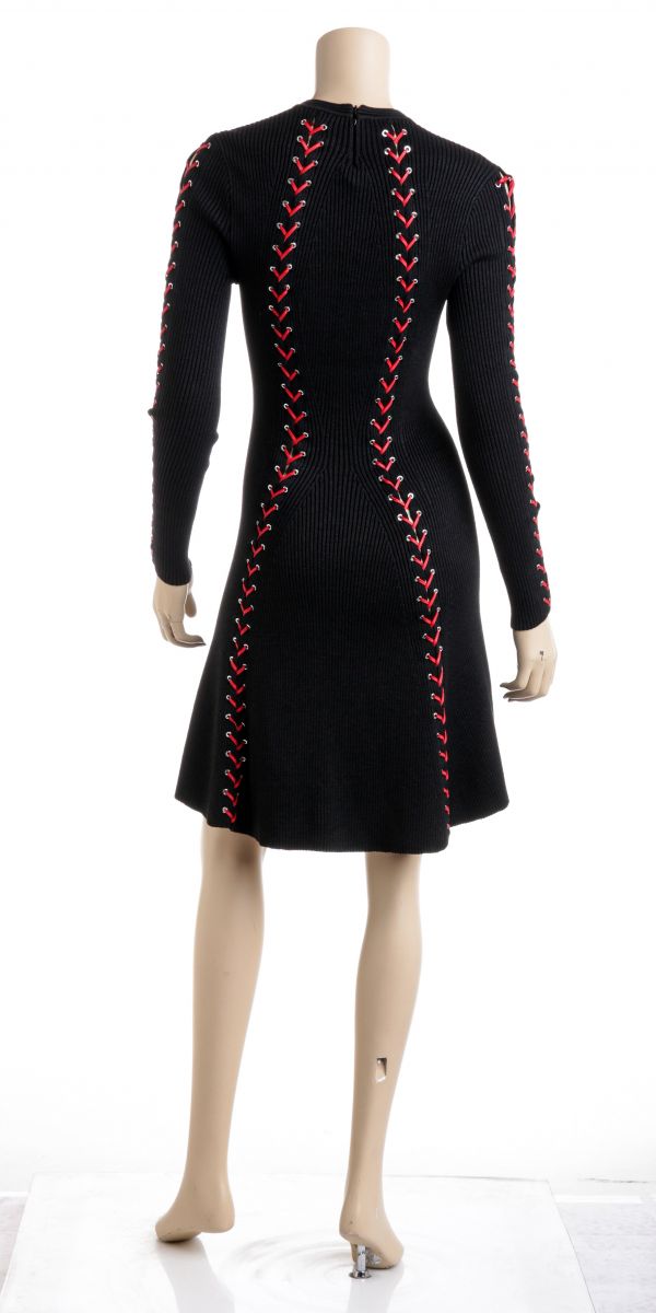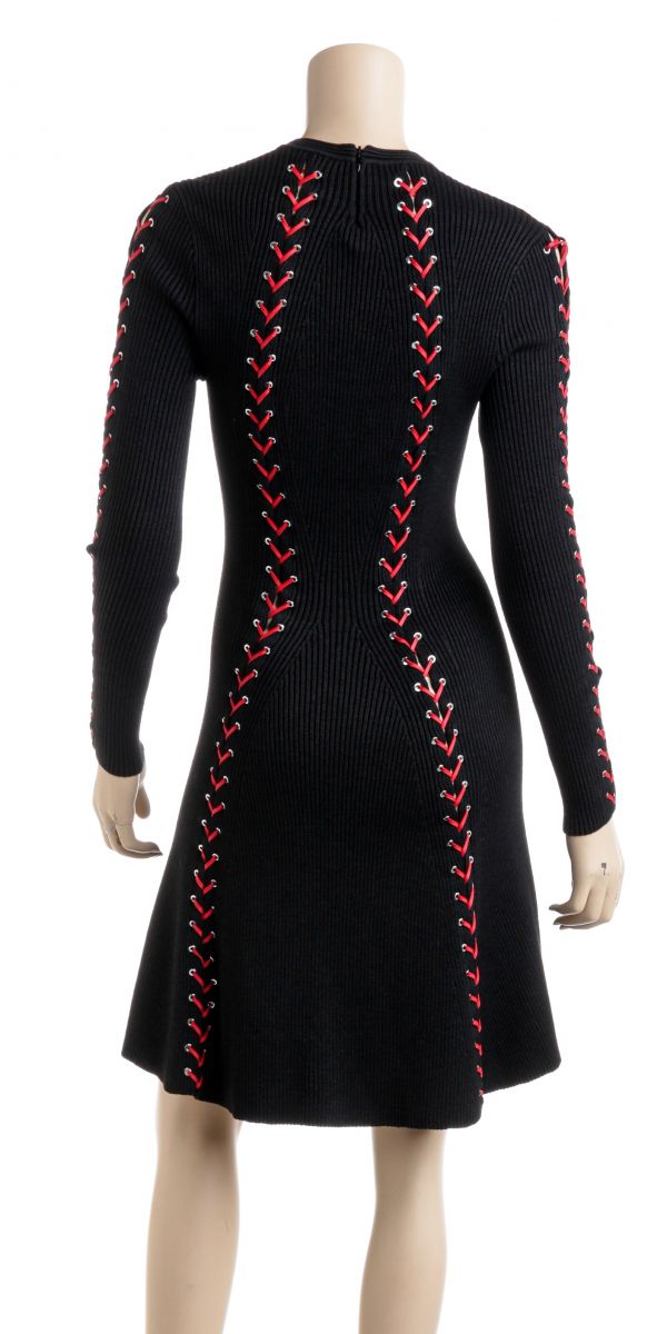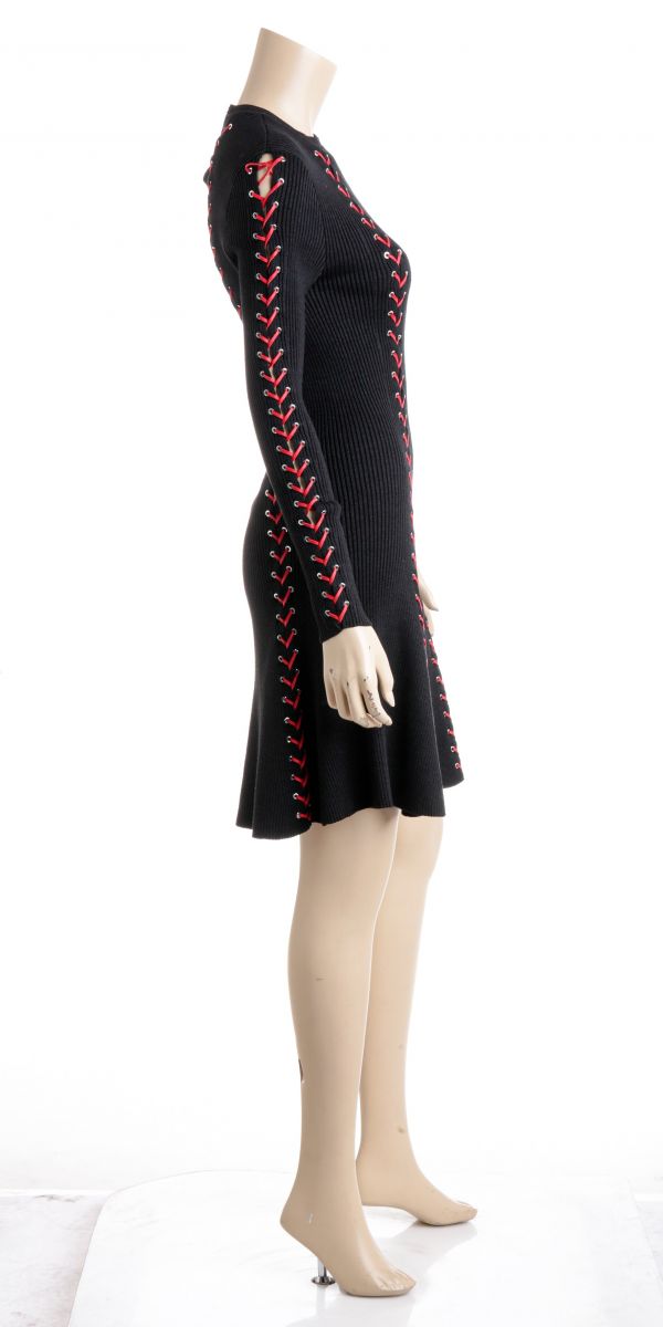 Alexander McQueen Black With Red Laced Stripes Flared Knitwear Dress