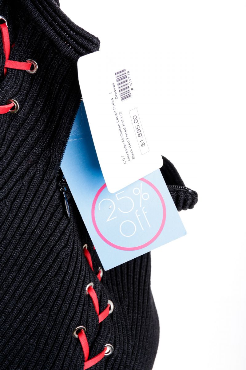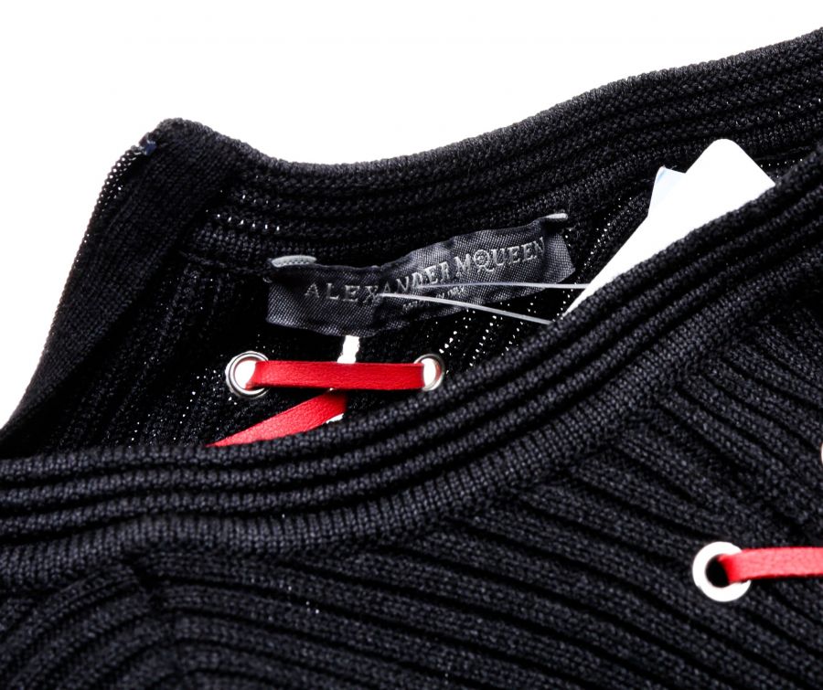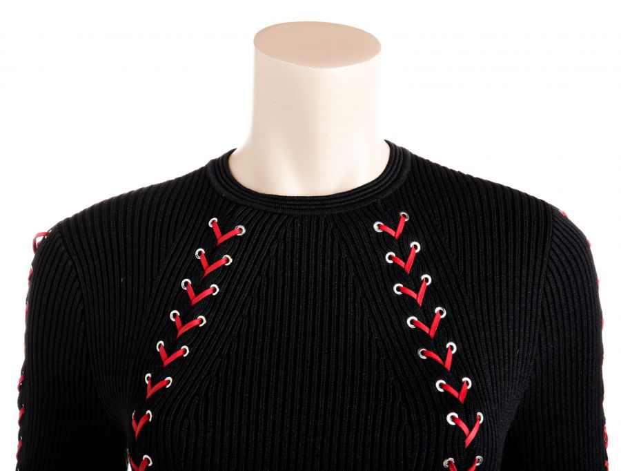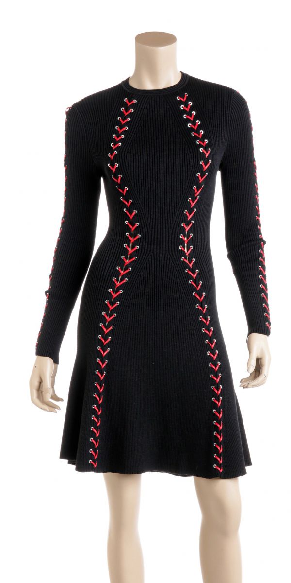 Alexander McQueen Black With Red Laced Stripes Flared Knitwear Dress