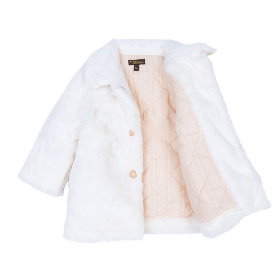 Striking White quilted faux fur swing coat. This coat for girlswill complete any winter outfit. Featuring a collar, long sleeves andquiltedlining. Add alittle edge when styled with booties.