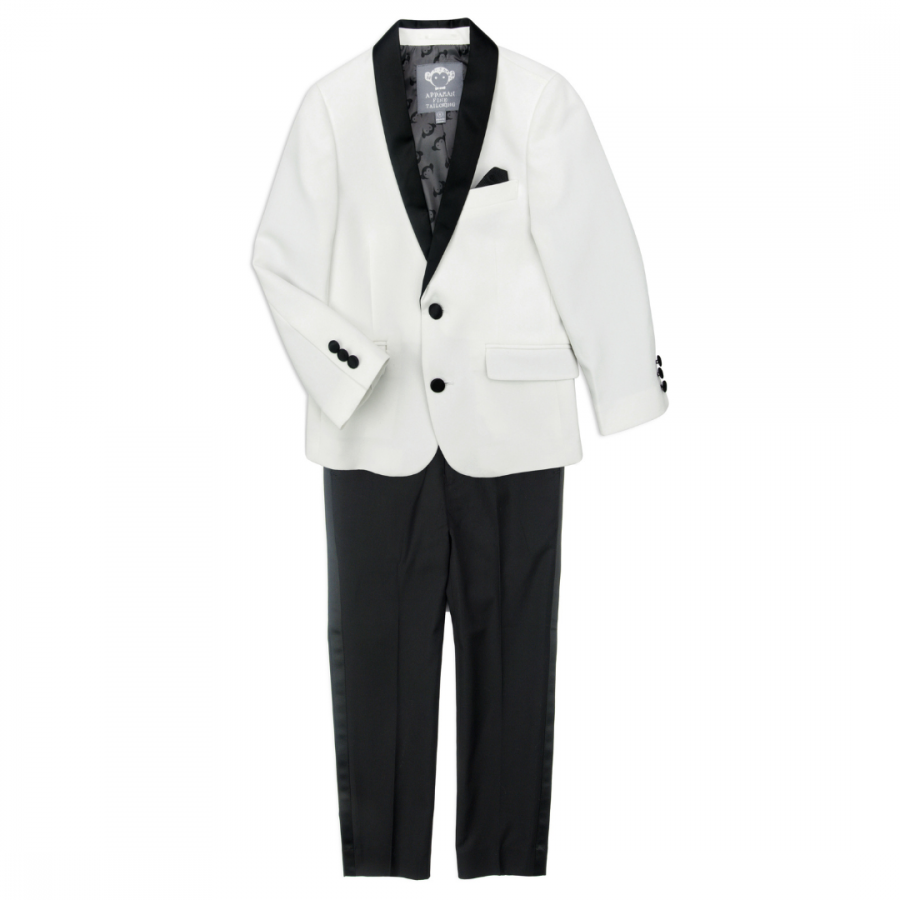 Just what you need to spruce up your little one for those Black Tie Events! Our tuxedo with a satin collar, and front buttons. Also featuring a pop-up pocket square.
