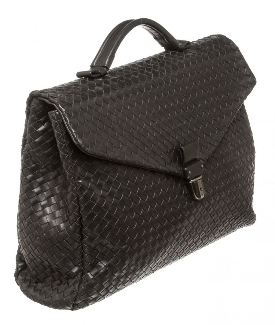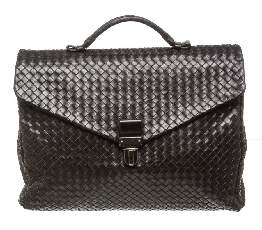 Bottega Veneta Black Intrecciato Leather Briefcase