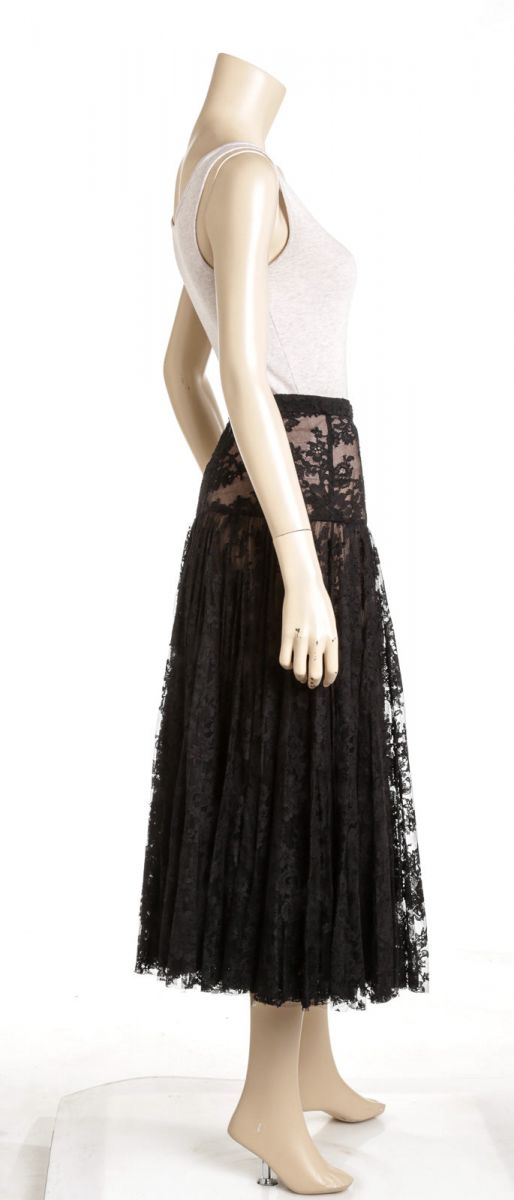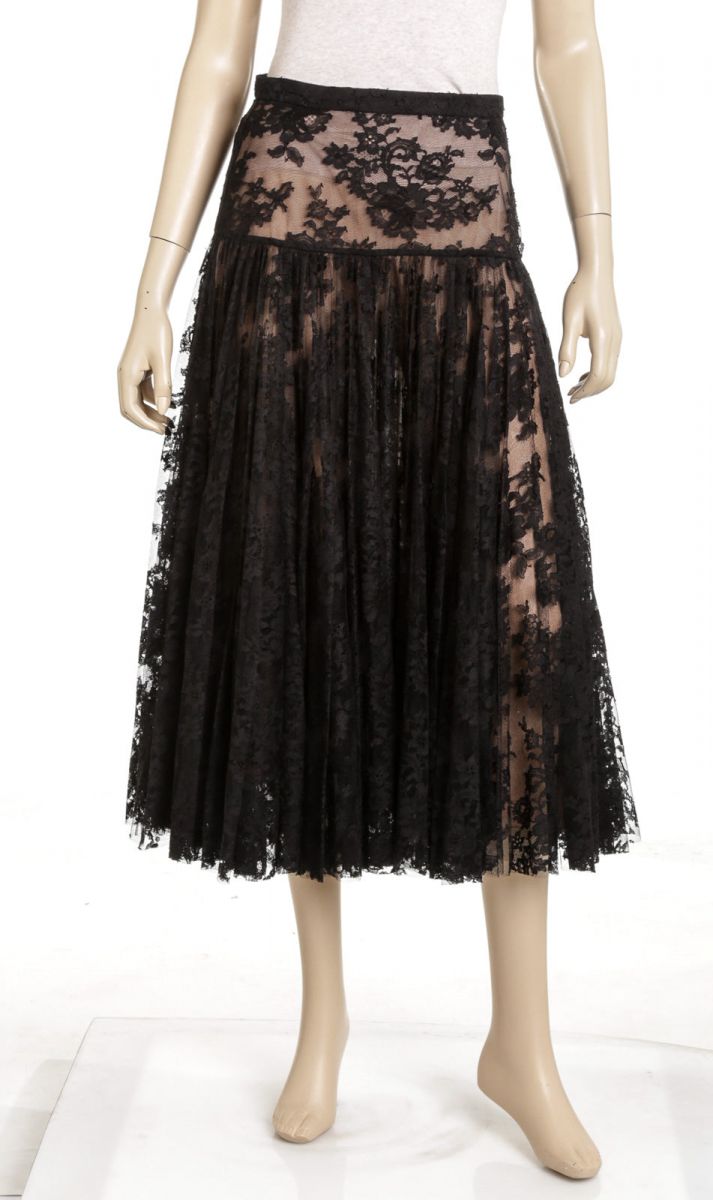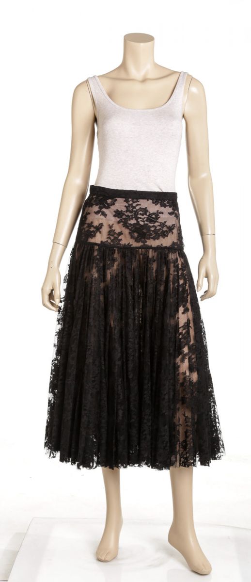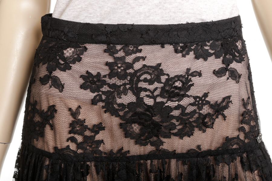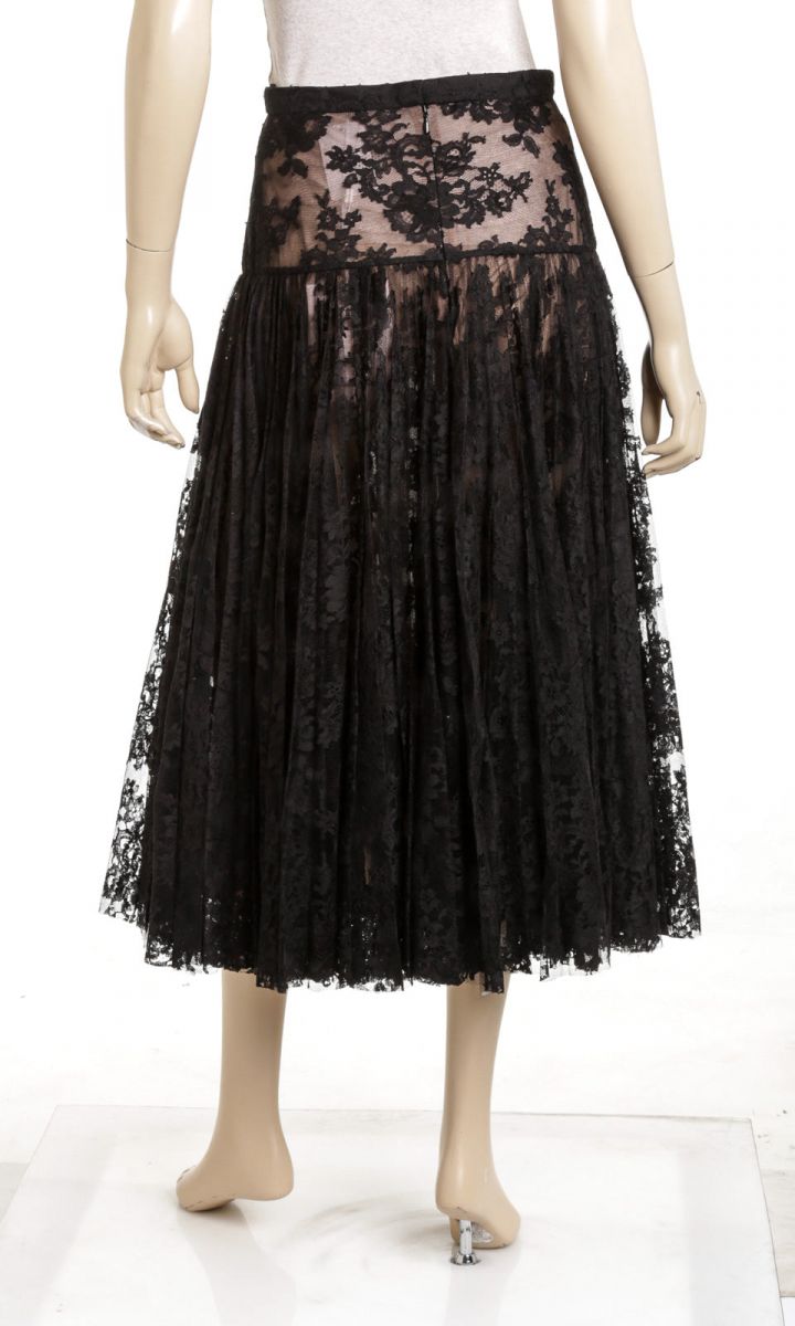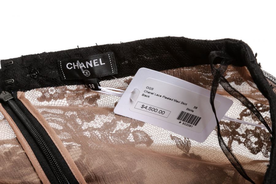 Minimalism isn't dead, and Chanel knows it. Crafted from pure black floral lace, this pleaded skirt is a classic. If you keep it simple, you can't go wrong. Featuring a waistband, a concealed zip fastening in back, a maxi length and a full nude lining.
