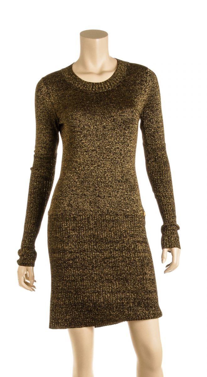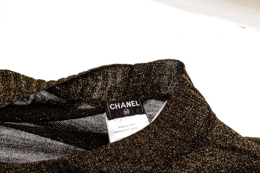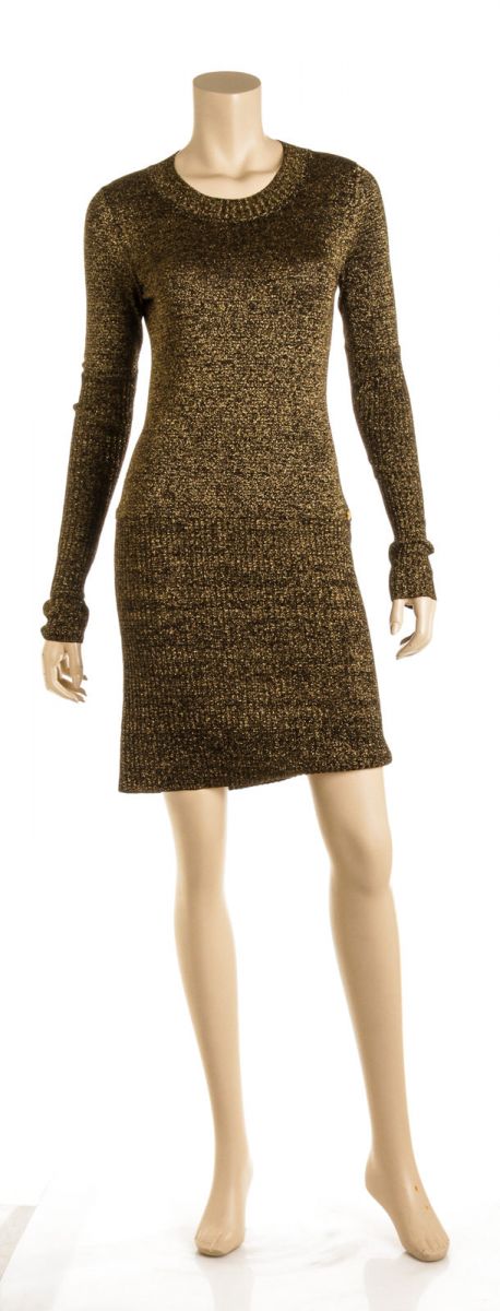 Chanel Gold & Black Metallic Knit Long Sleeved Dress from 2009
