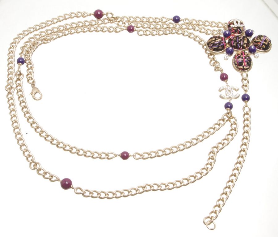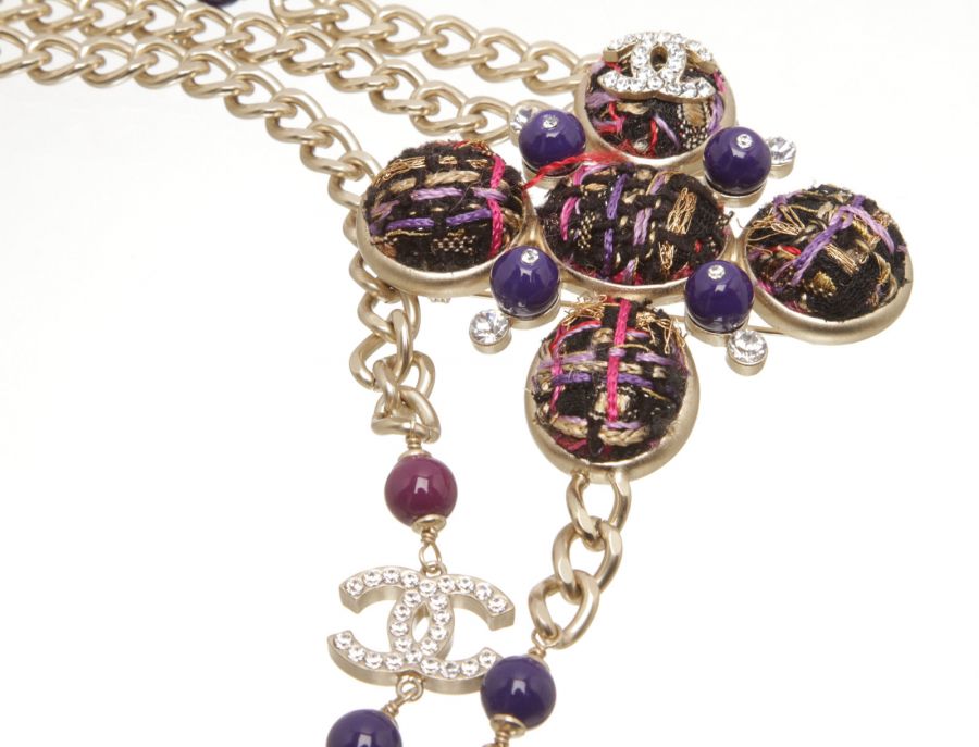 Chanel Purple Tweed And Chain 07A Belt