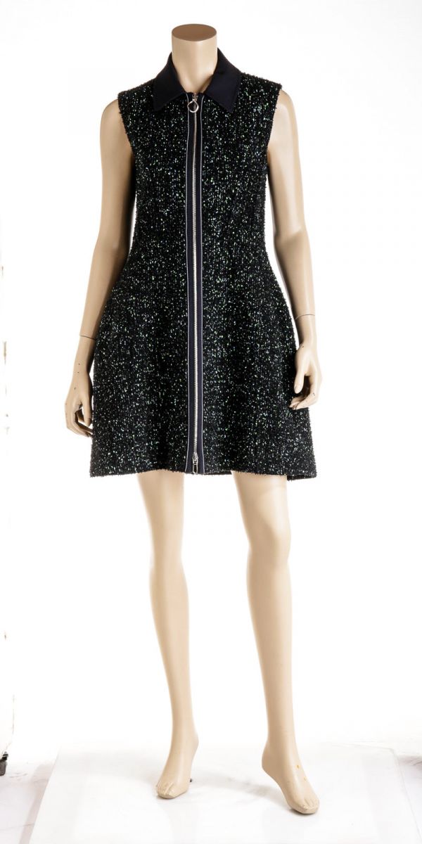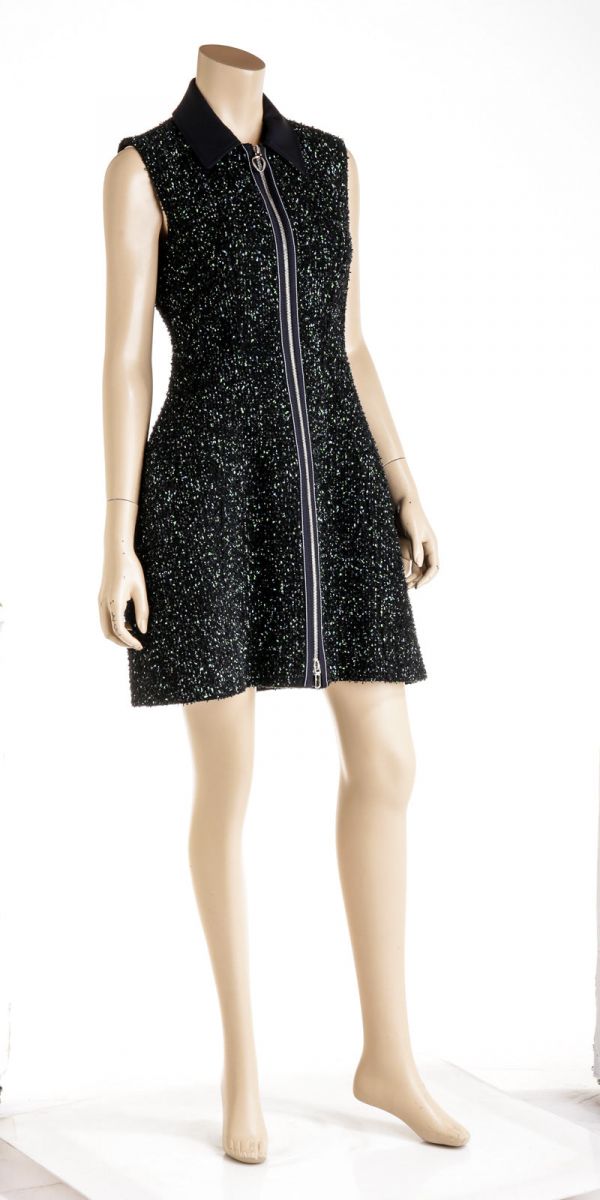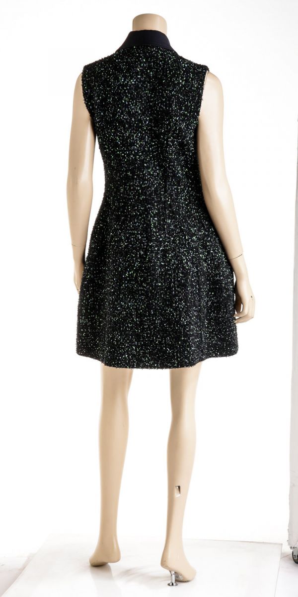 Christian Dior Navy Blue Green Zip up A line Tweed Sleeveless Dress