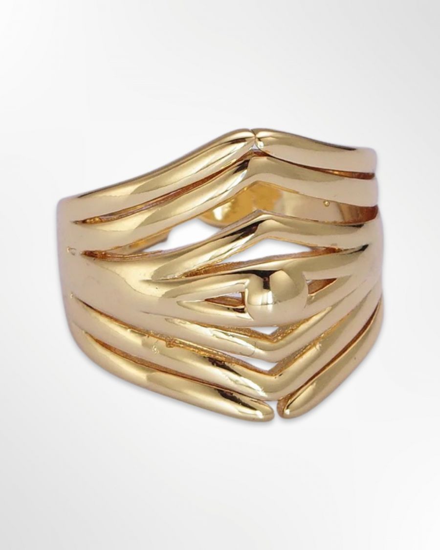 A unique geometricring that pairs perfectly with our solid gold or gemstone rings. Size 6.5.