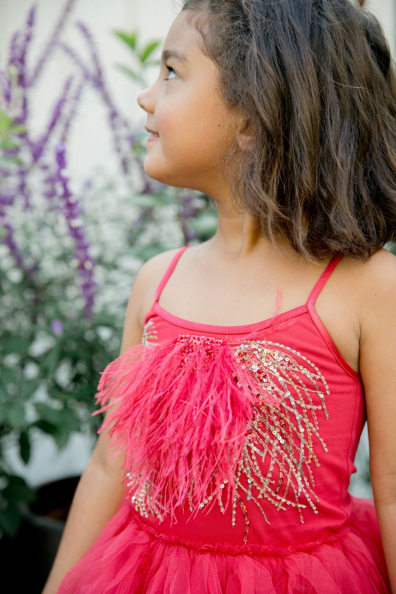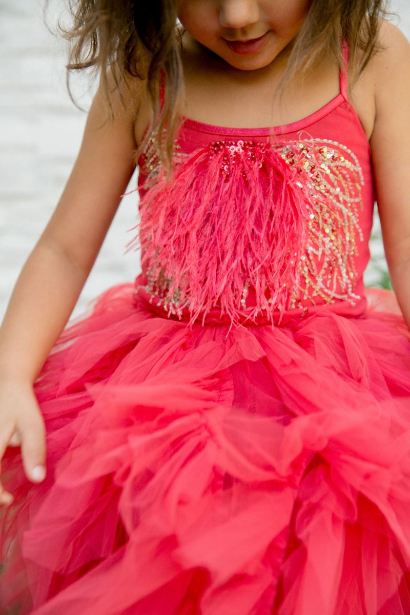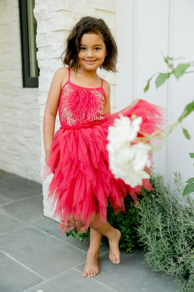 This is the perfect holiday dress! This tutu beauty has a bodice that is embellished with glistening beads and sequins and a vibrant tulle skirt.