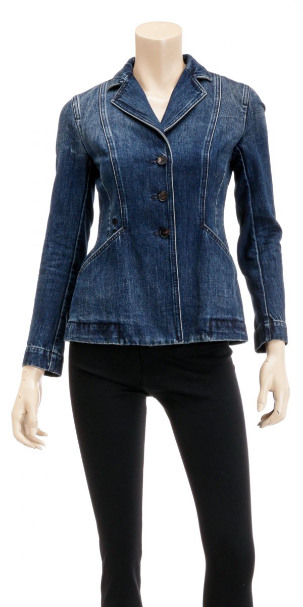 An icon from the New Look imagined by Christian Dior in 1947, the Bar Jacket is updated in a modern variation. Crafted in raw blue cotton denim, it boasts topstitching details that enhance its silhouette, as well as fabric-covered buttons for elegant allure. The jacket will enhance all of the season's looks with sophistication.