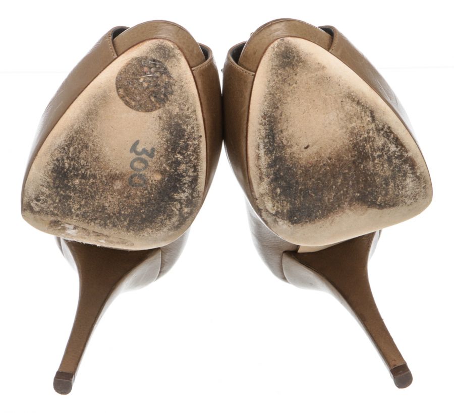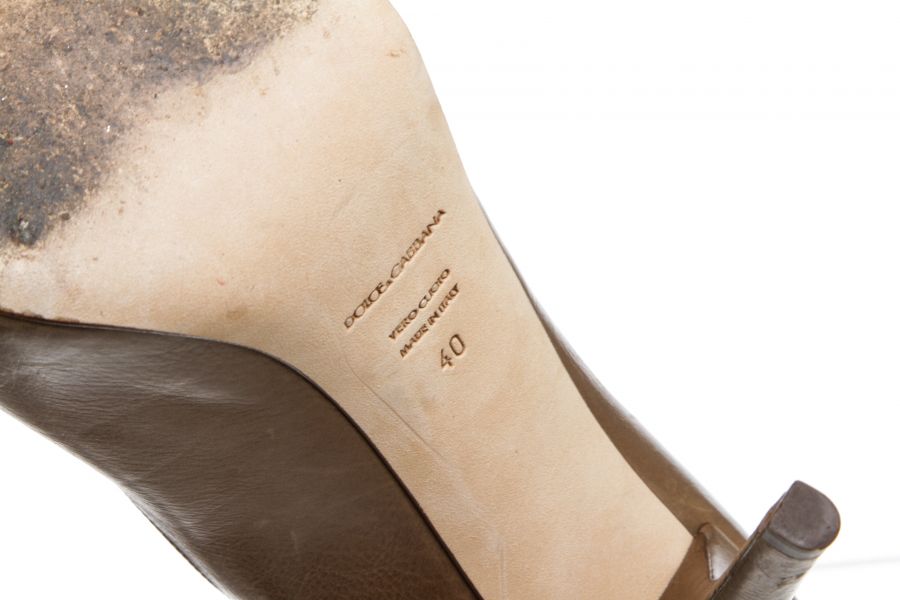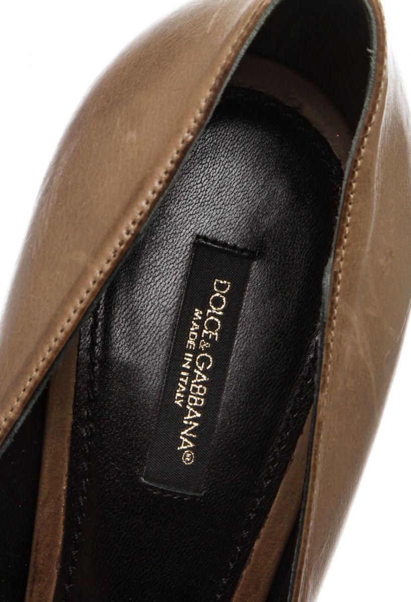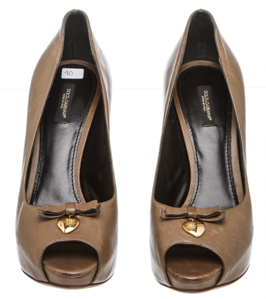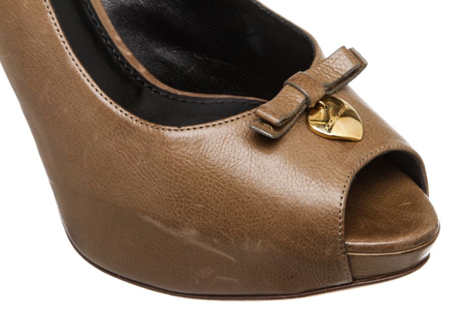 Dolce and Gabbana Taupe Leather Peep-Toe Platform Pump (Size 40)