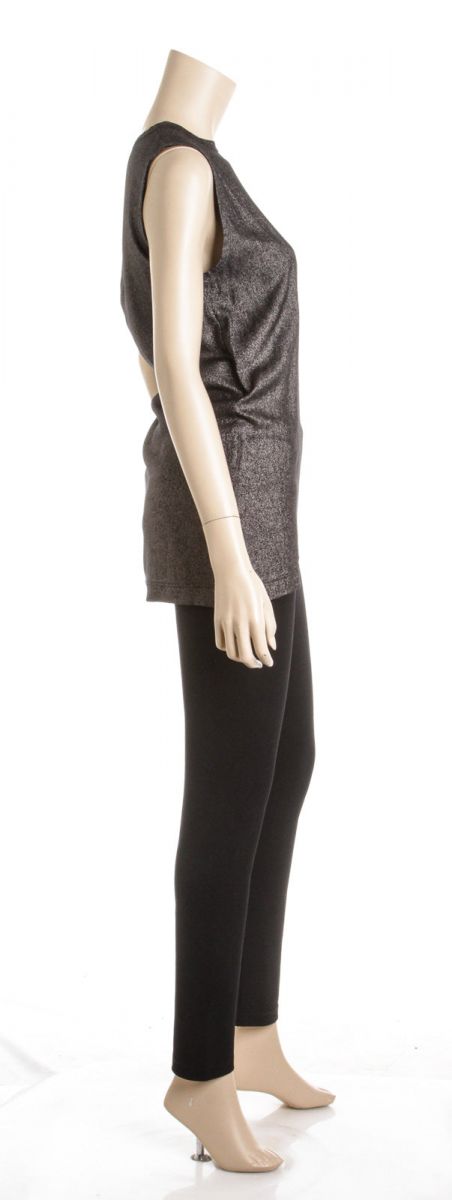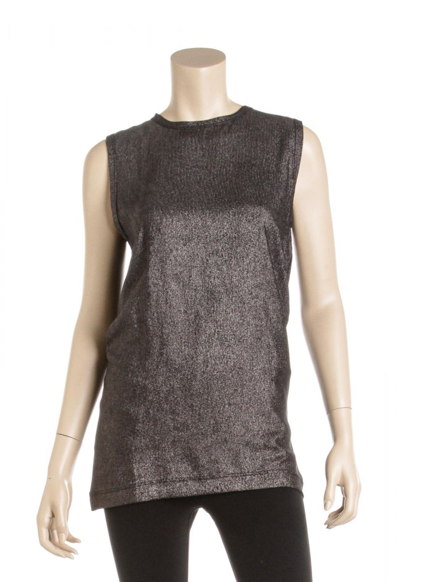 Gray lamé sleeveless top that features a round neckline and silver-tone zipper at the back. CDT 491729 MP 8.1.19