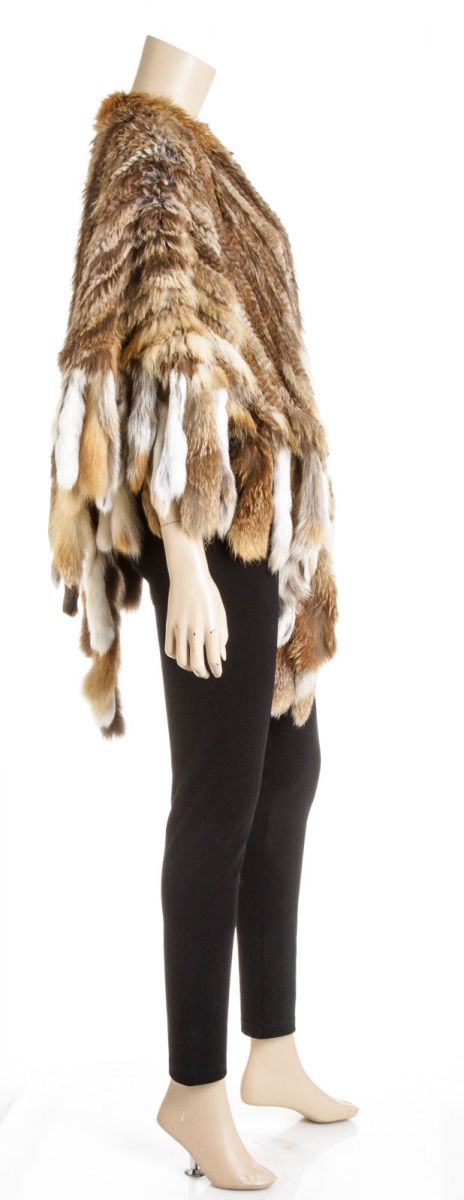 Plush brown rabbit, raccoon and fox fur distinguishes a luxurious shawl perfect to amp up the glamorous appeal to any wardrobe.