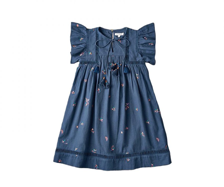 This fall and winter dress is the prefect style in a floral print with flutter sleeves, matching tassel ties and fine detail at the hemline and shoulders. 100% cotton
