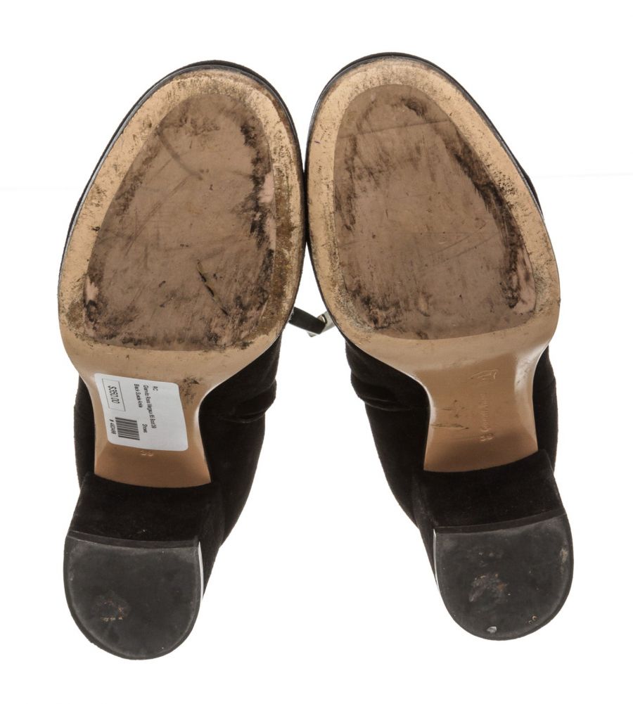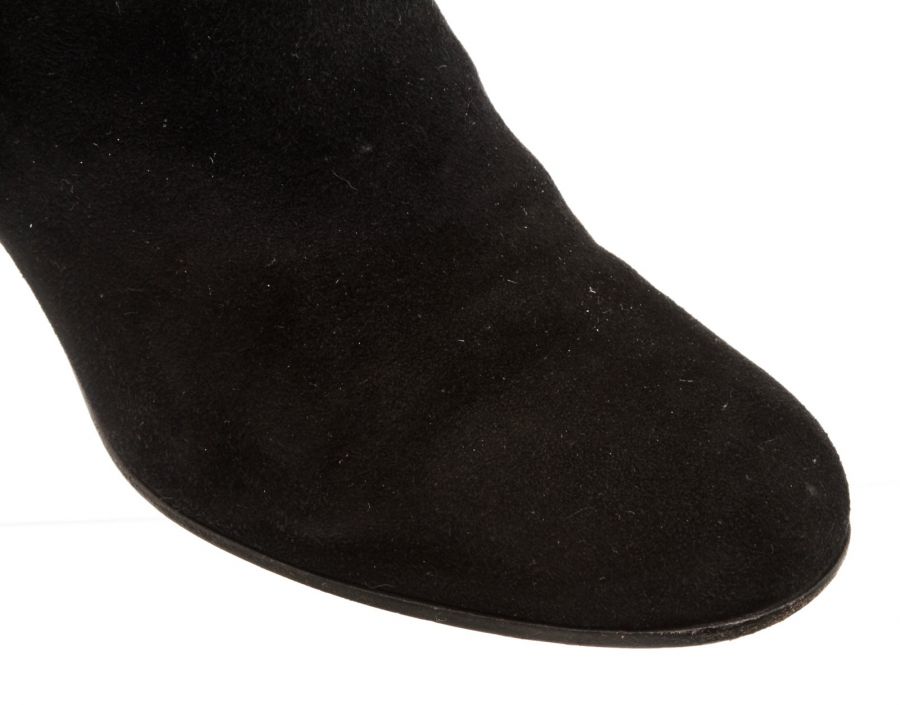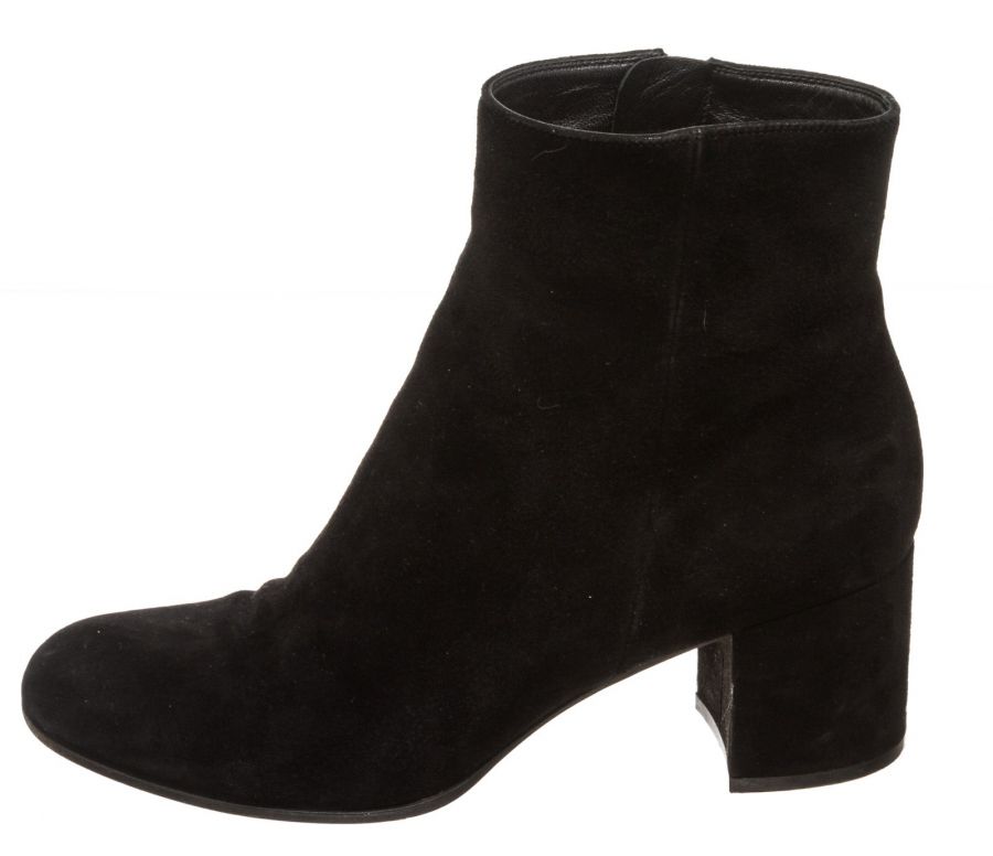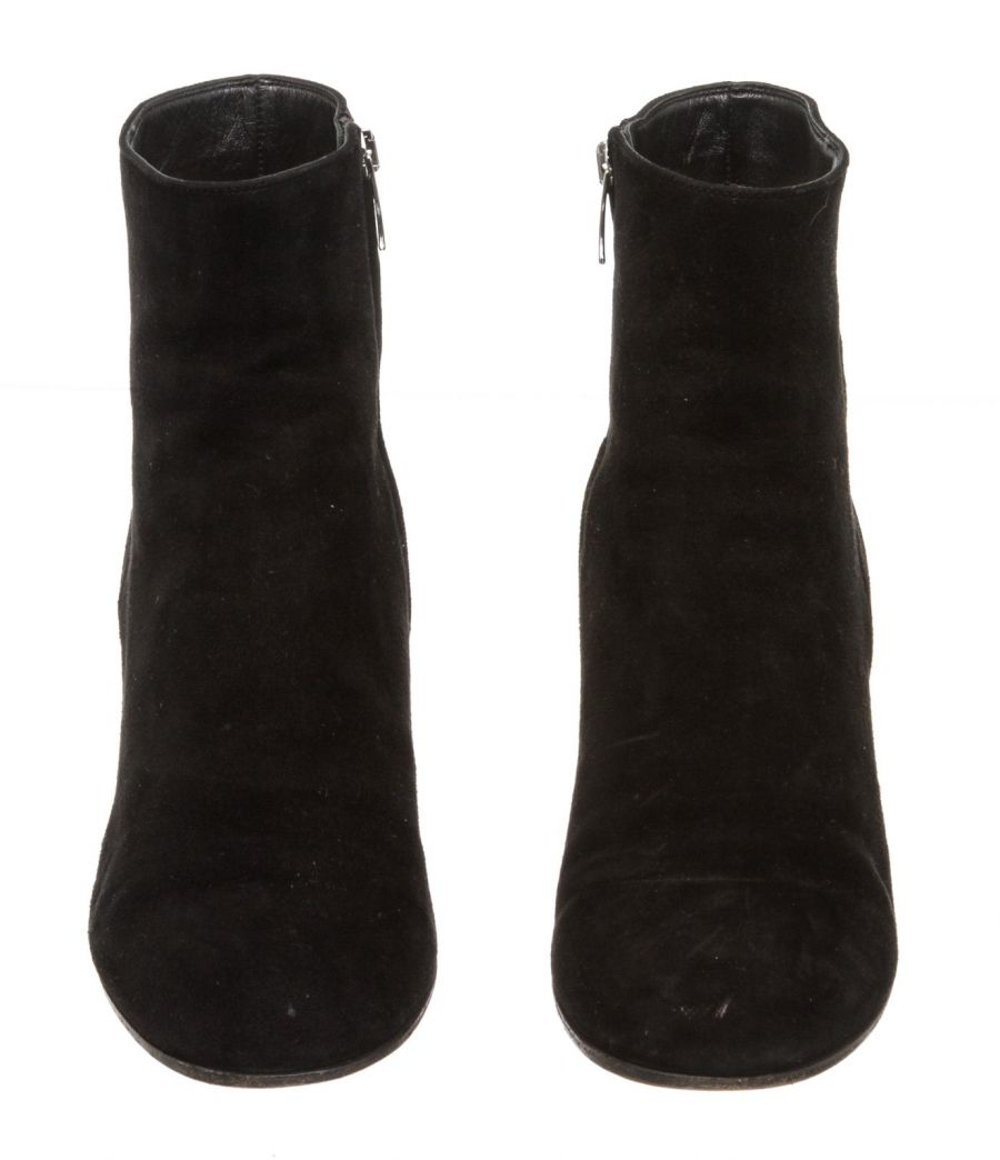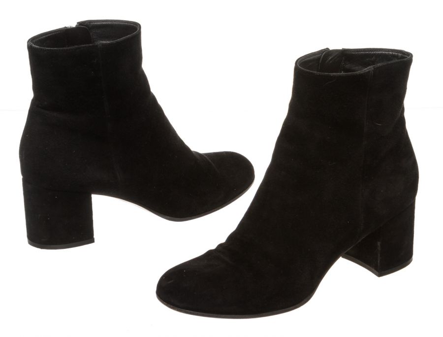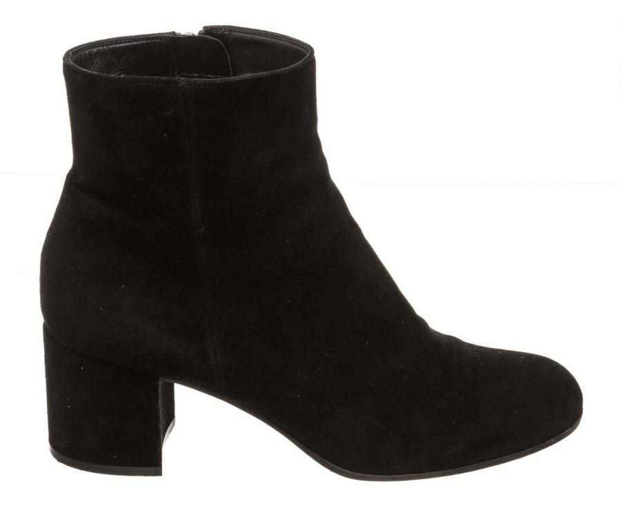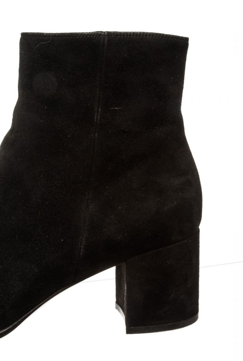Black suede leather ankle boots that features a round toe, side zip fastening, covered block heel and leather sole. RC 492468 MP 8.20.19
