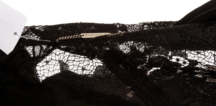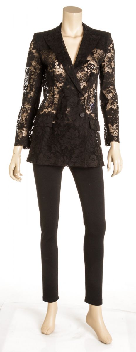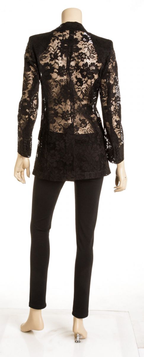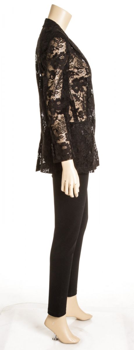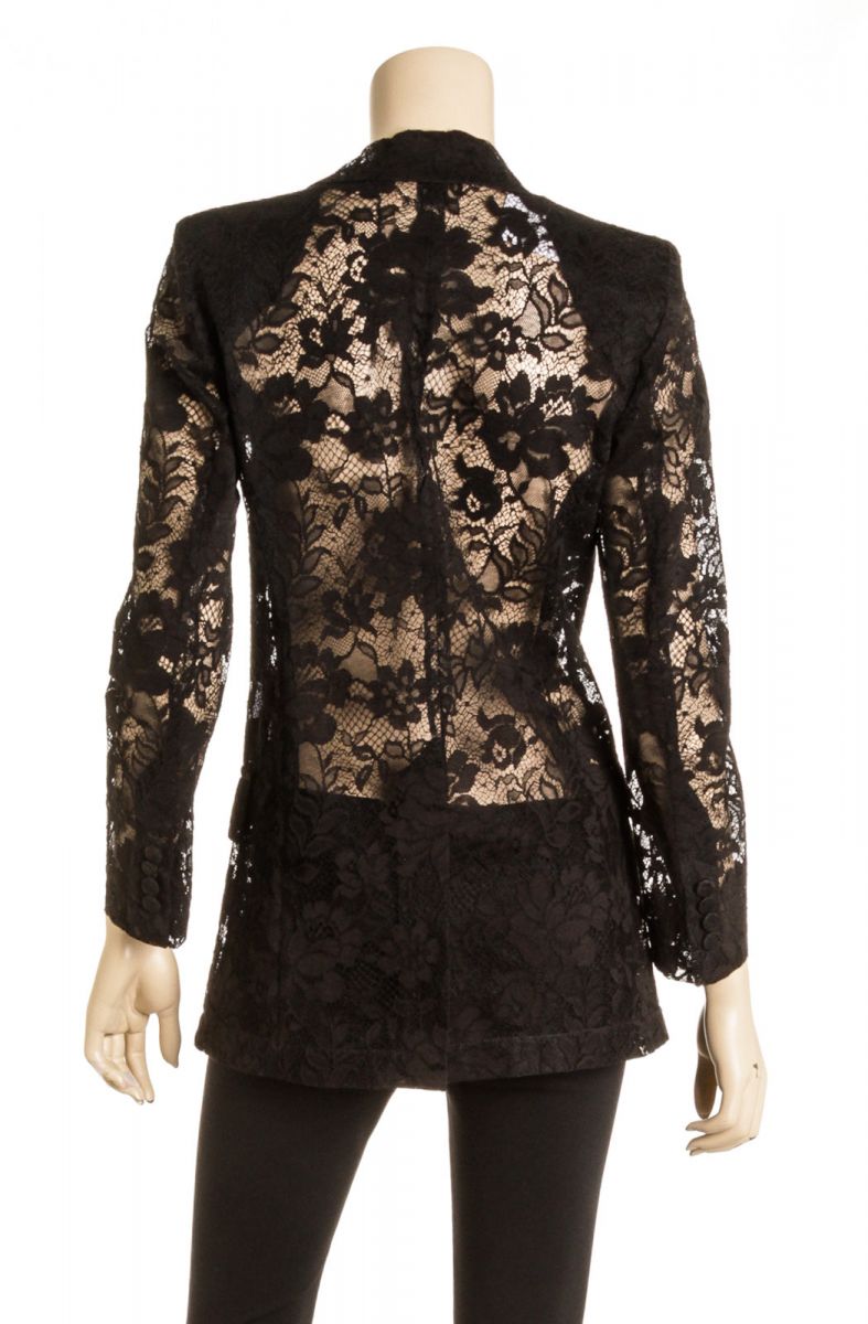 Black see-through lace blazer from Givenchy featuring double-breasted button fastening, long sleeves and two flap pockets.