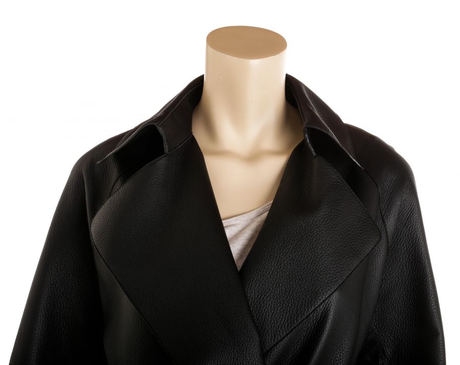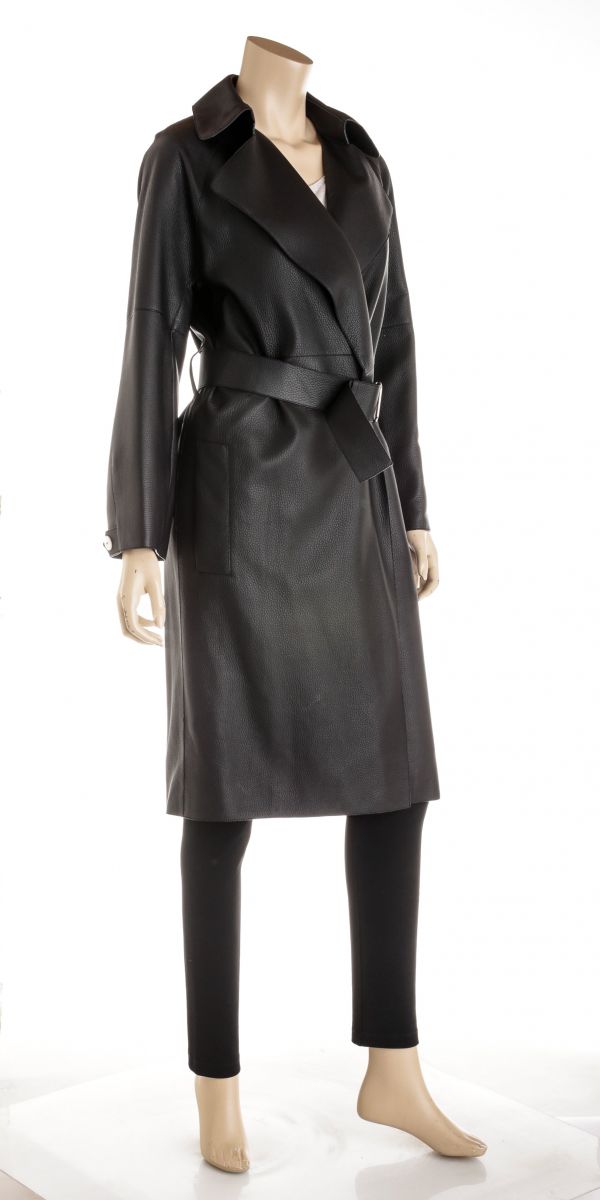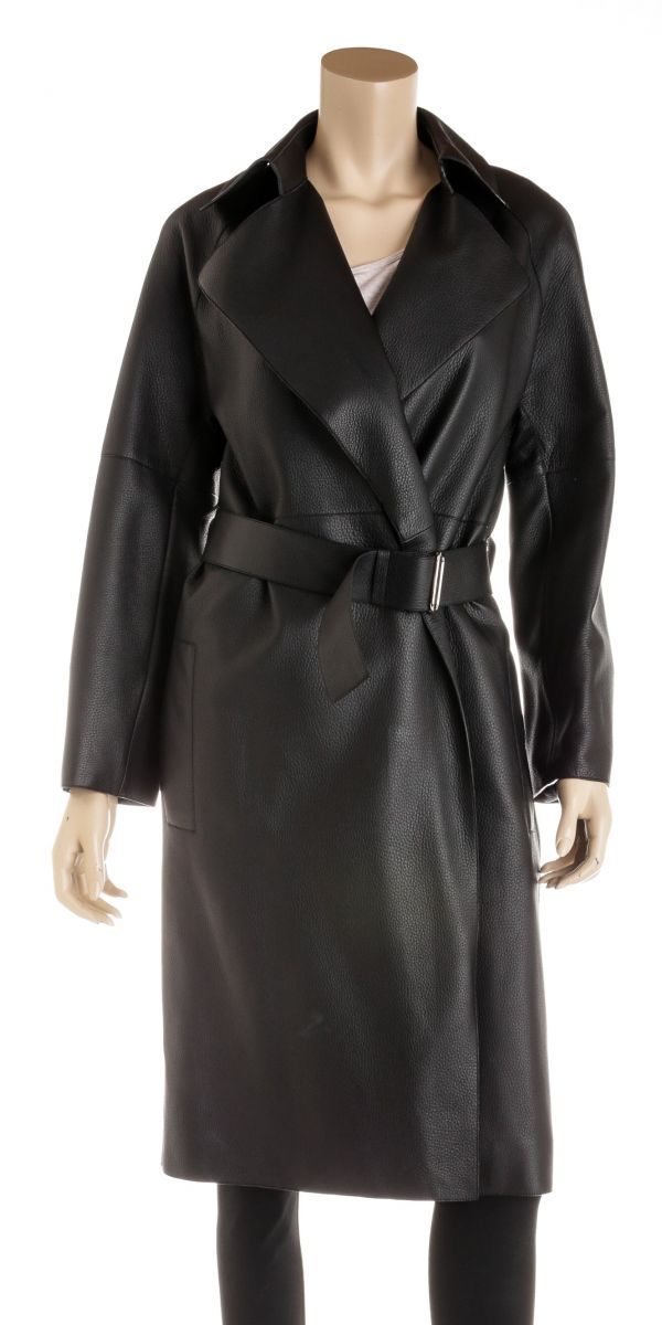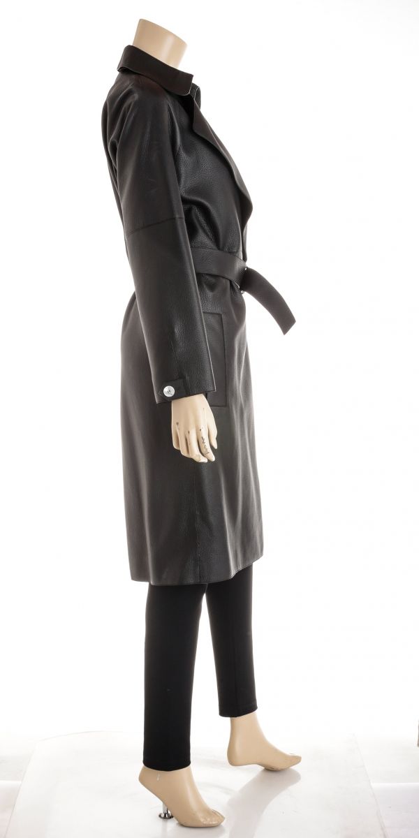 Hermes Black Deerskin Leather Long Belted Coat Size 36