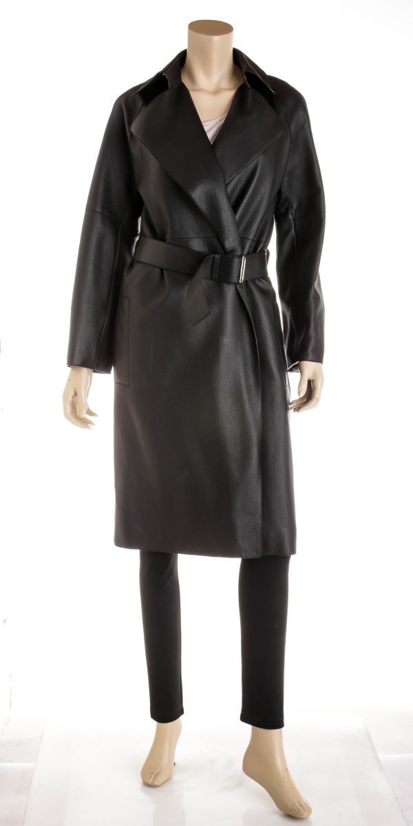 100% Authentic Hermes Black Deerskin Leather Long Belted Coat Size...