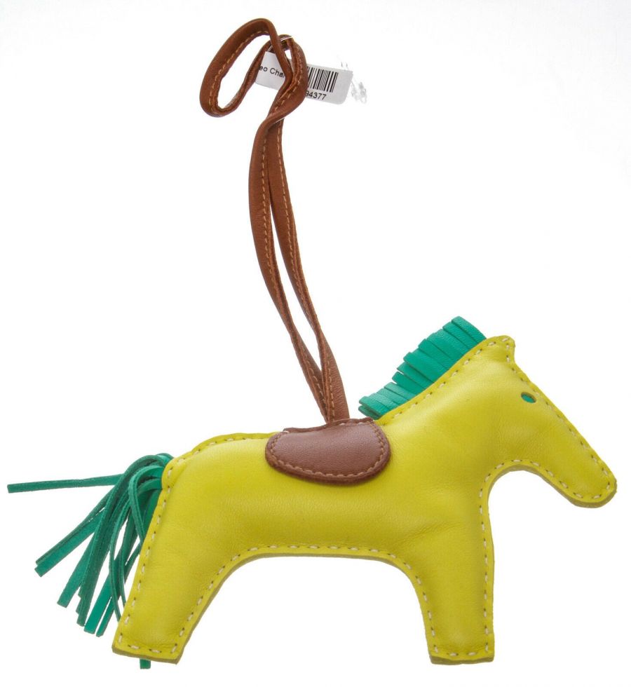 Hermes Horse charm crafted from Milo lambskin in Lime, Menthe and Fauve colorway.