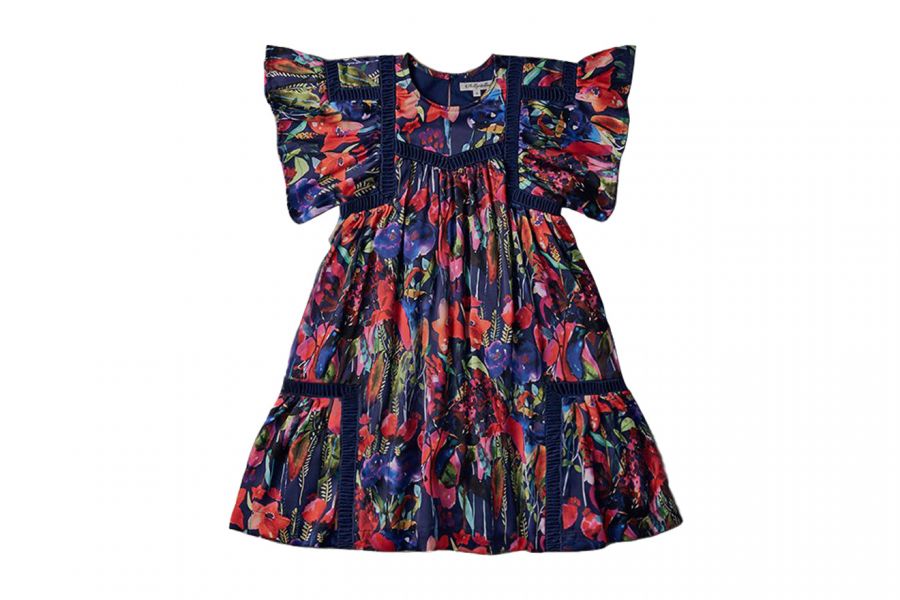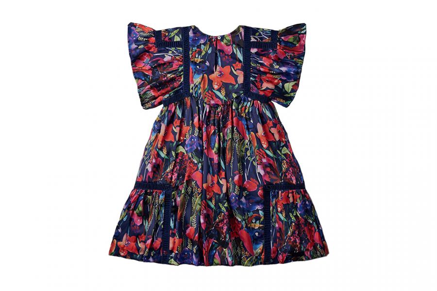 An elegant dress by Nellystella in deep, rich colors for any special occasion. Features ruffled sleeves and button closure at the back. 97% Cotton, 3% Polyester