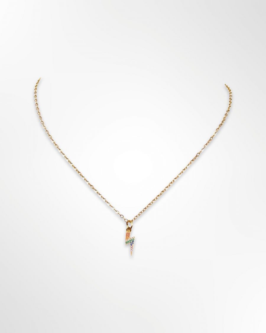 A reminder of strength and power, the Lightning CZ Necklace is electrifying! The colorful cubic zirconia gems form a lightning bolt that sparkles and shines. The charm hangs on a gold-filled chain with an easy-to-grip lobster clasp closure.