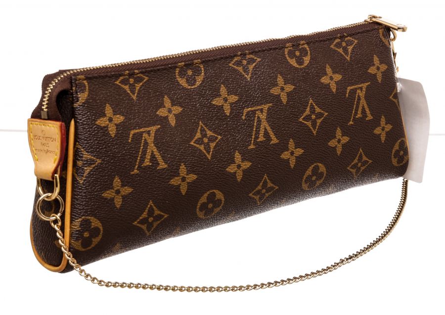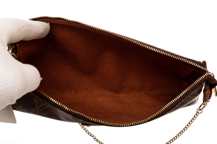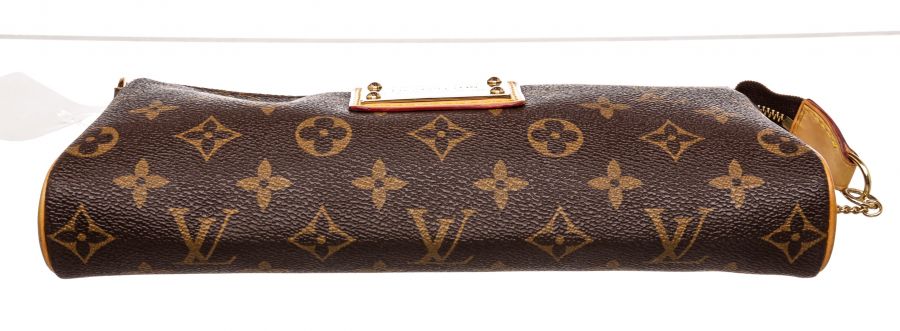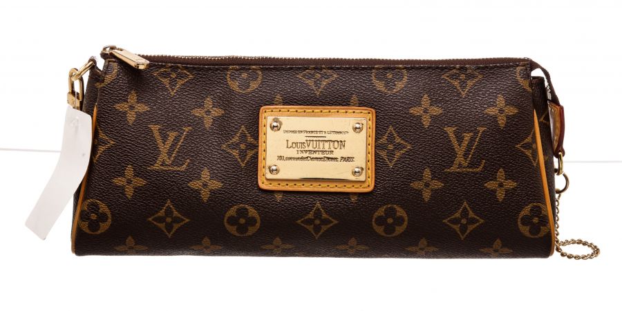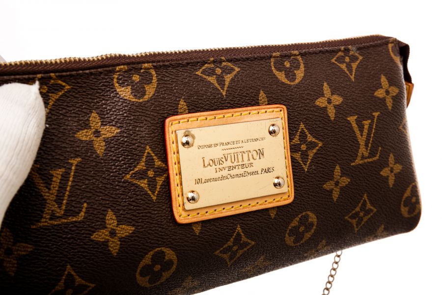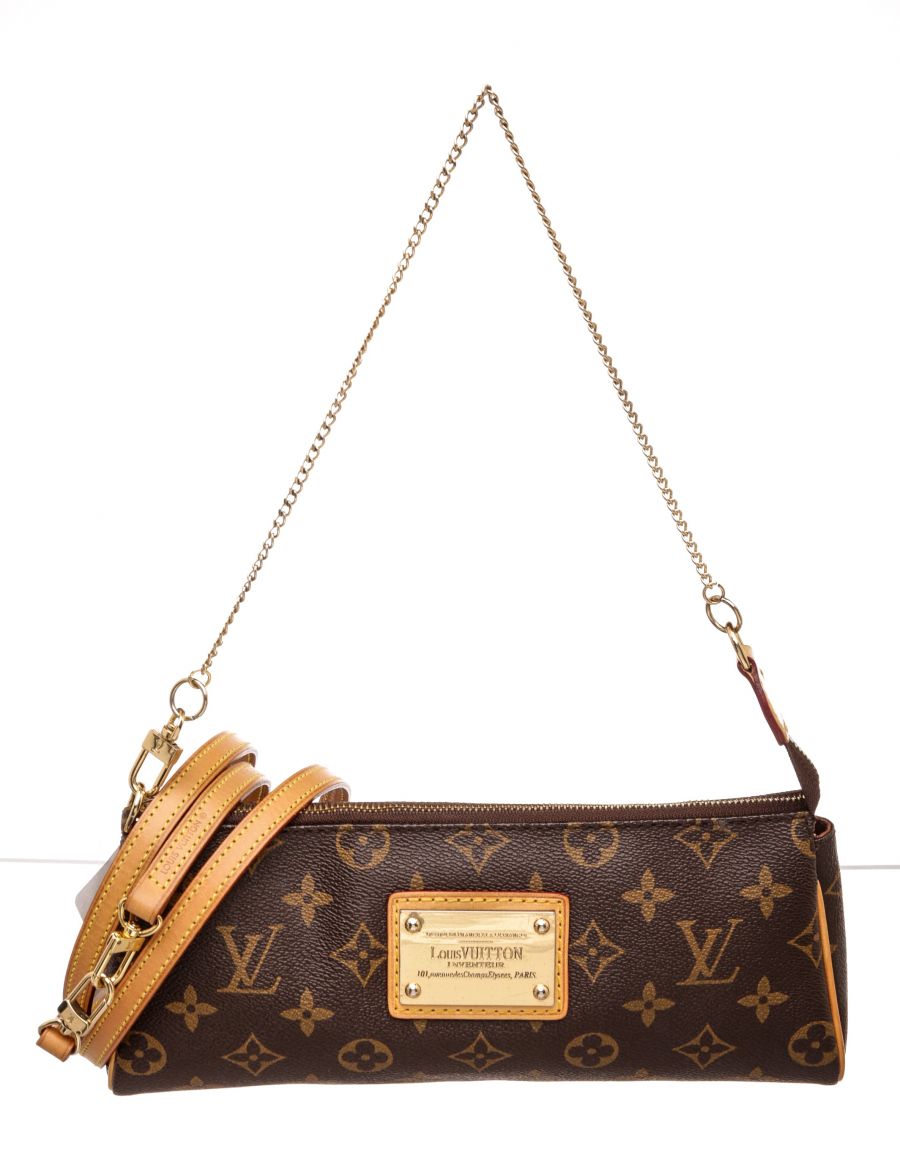 Chic and versatile Sophie shoulder bag rendered in the House's signature Monogram coated canvas with natural Vachetta leather trim, slim side panels and accented with gold-tone brass hardware showcasing 'Louis Vuitton Inventeur' engraved name plate on front. Featuring a convertible chain-link shoulder strap as well as a detachable leather crossbody strap, this bag can be purposed for a variety of looks.