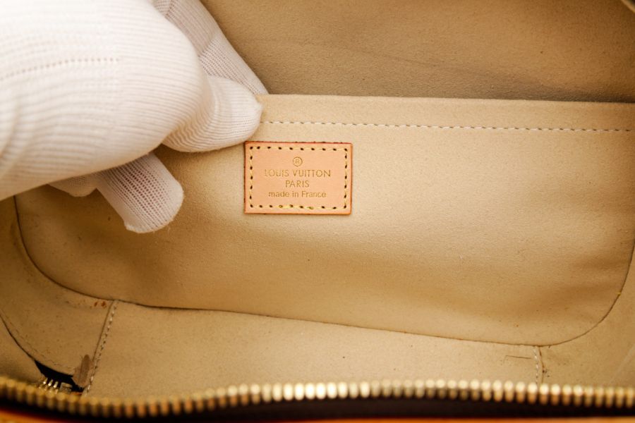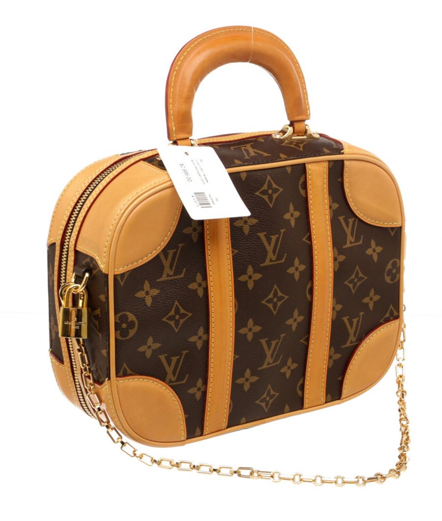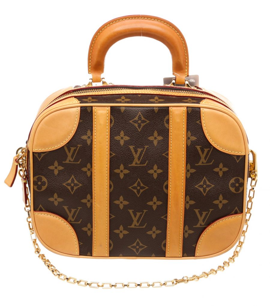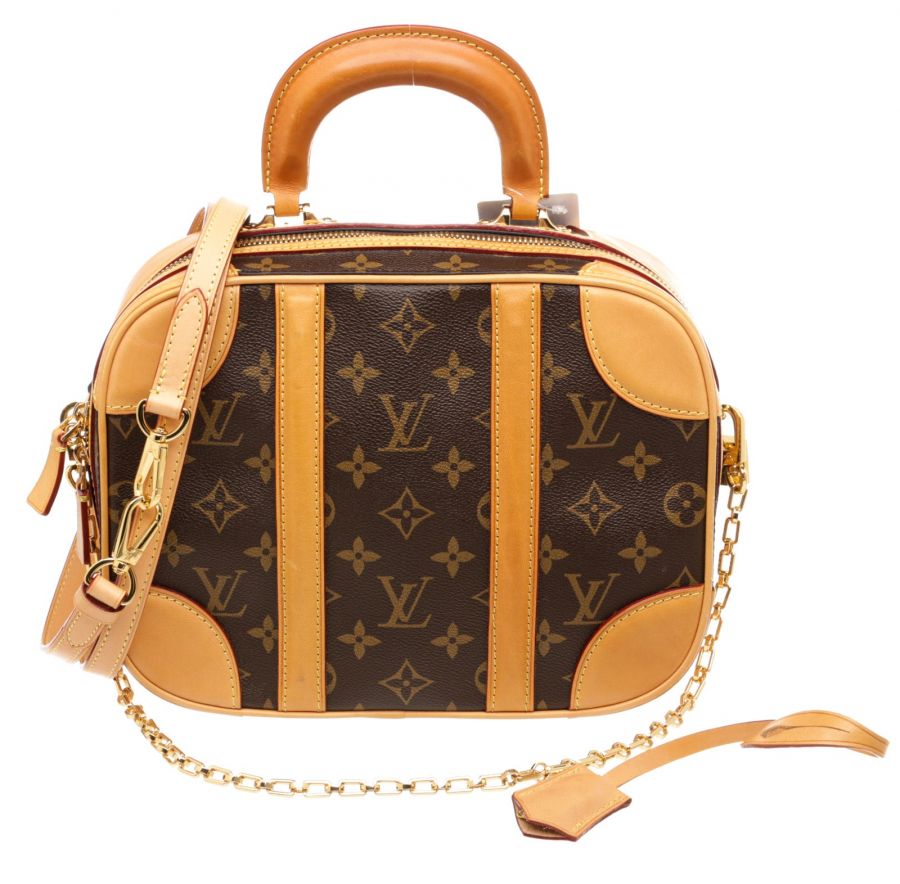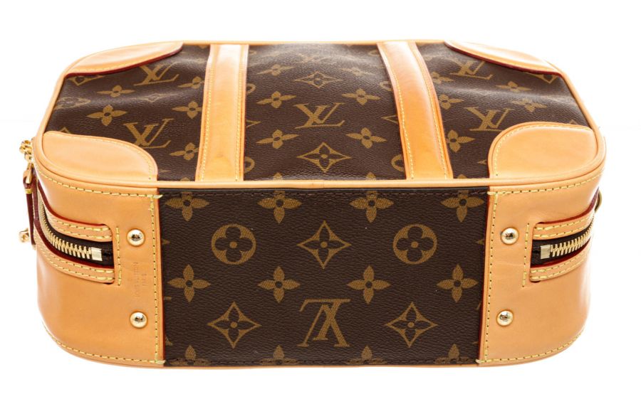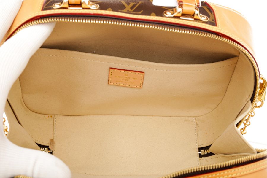 This chic handbag is crafted of Louis Vuitton monogram coated canvas. The bag features vachetta leather trim, handles, and an optional shoulder strap with brass hardware. The wrap-around zipper opens to a beige microfiber interior with patch pockets.