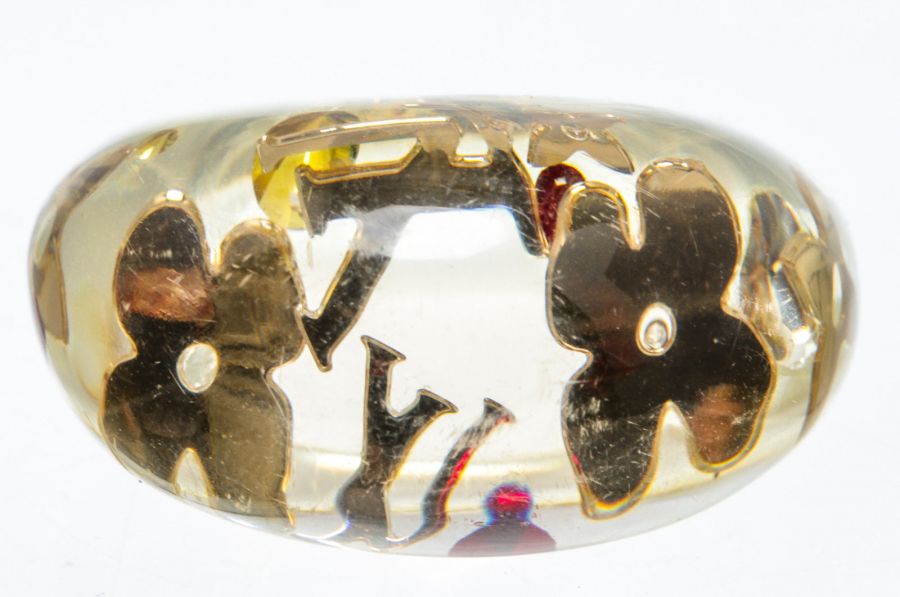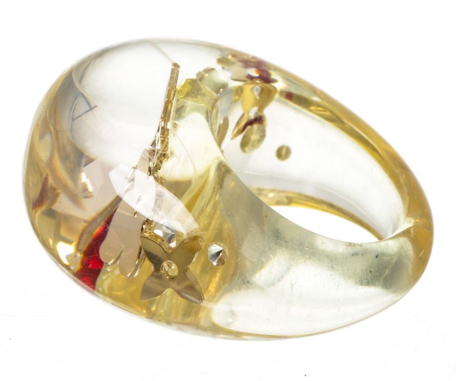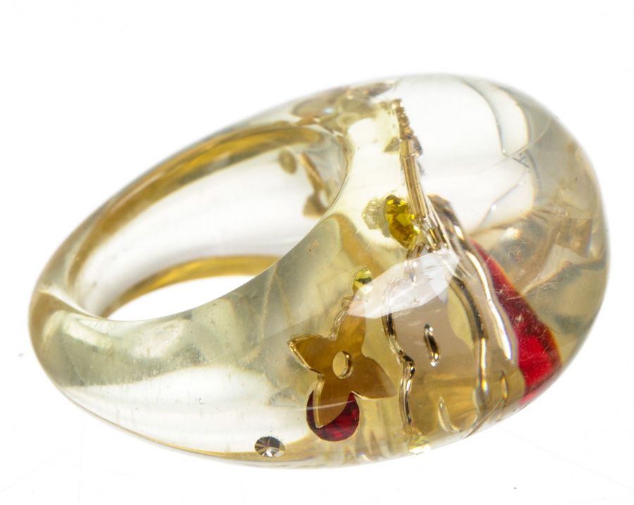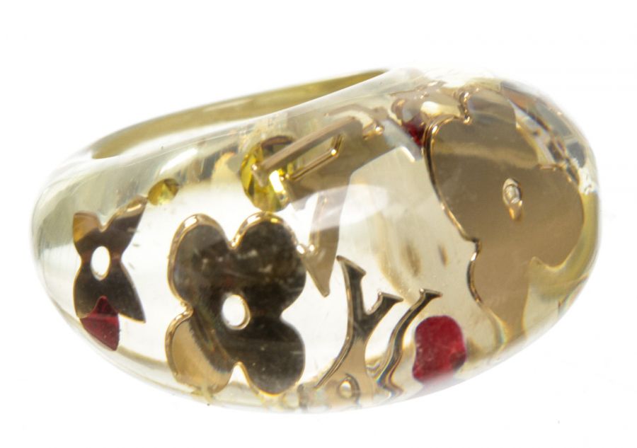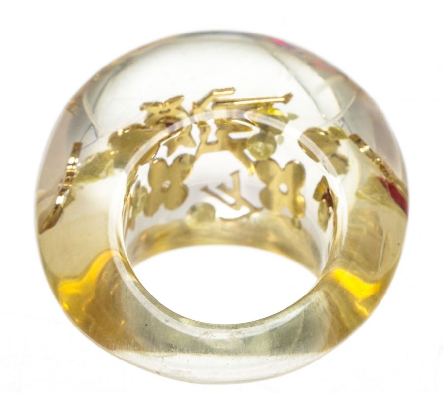 Clear high polished resin with gold-tone Louis Vuitton monogram inclusion ring. OQS 488676 MP 2.28.19