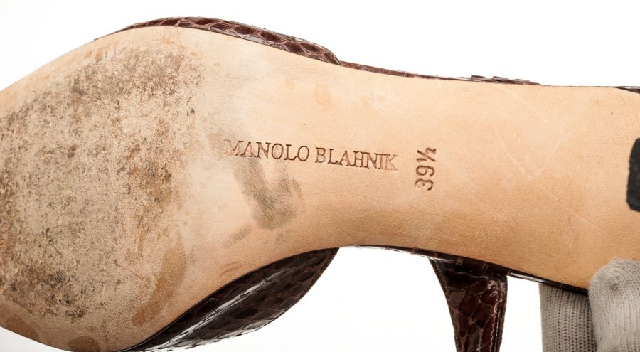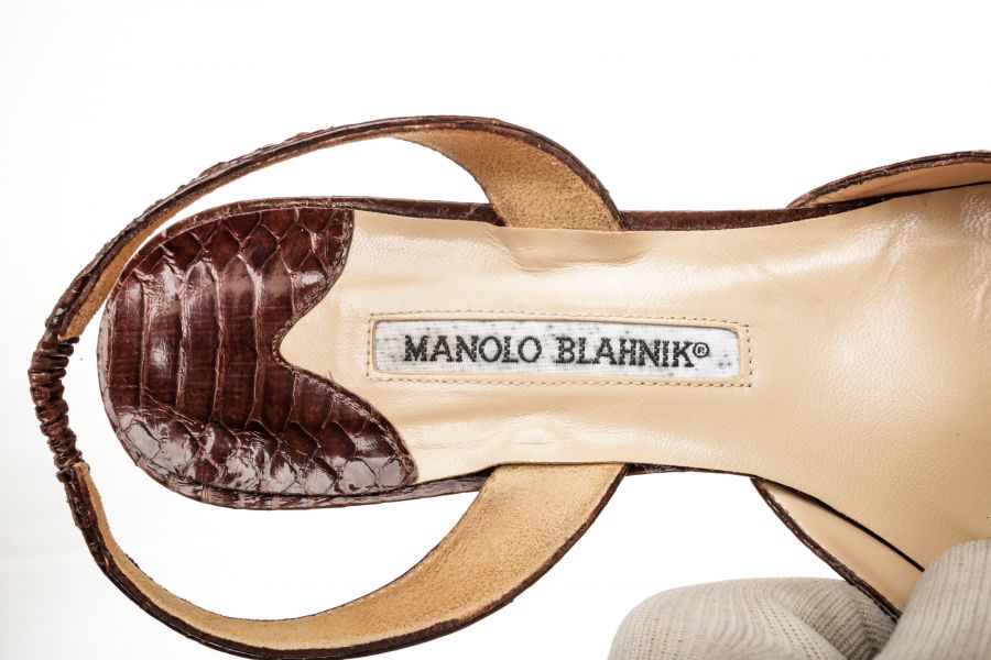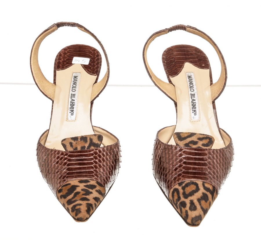 100% Authentic Manolo Blahnik brown slingback sandals with cheetah patte...