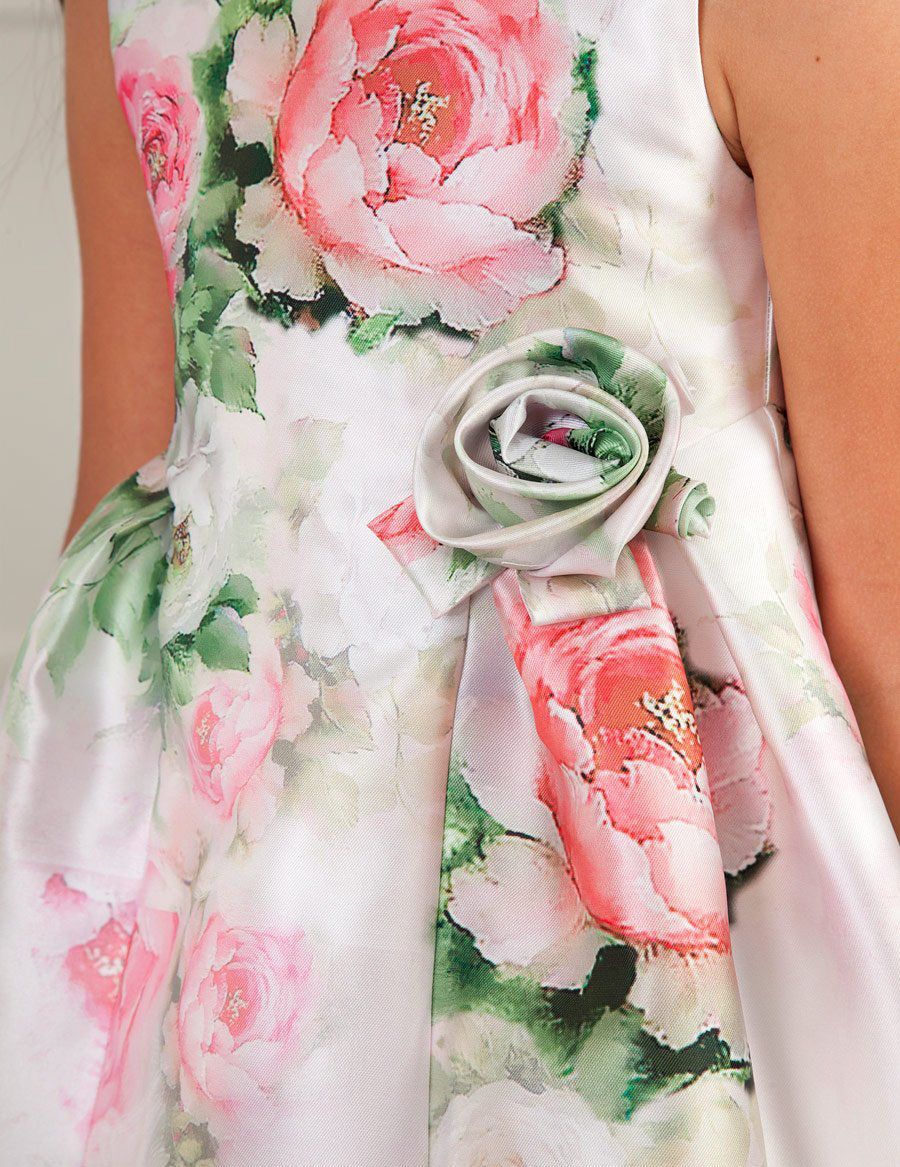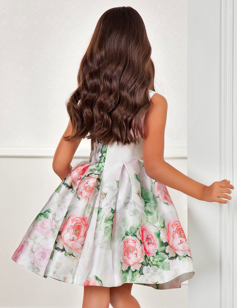 Cheerful dress made in mikado with delicate flower...