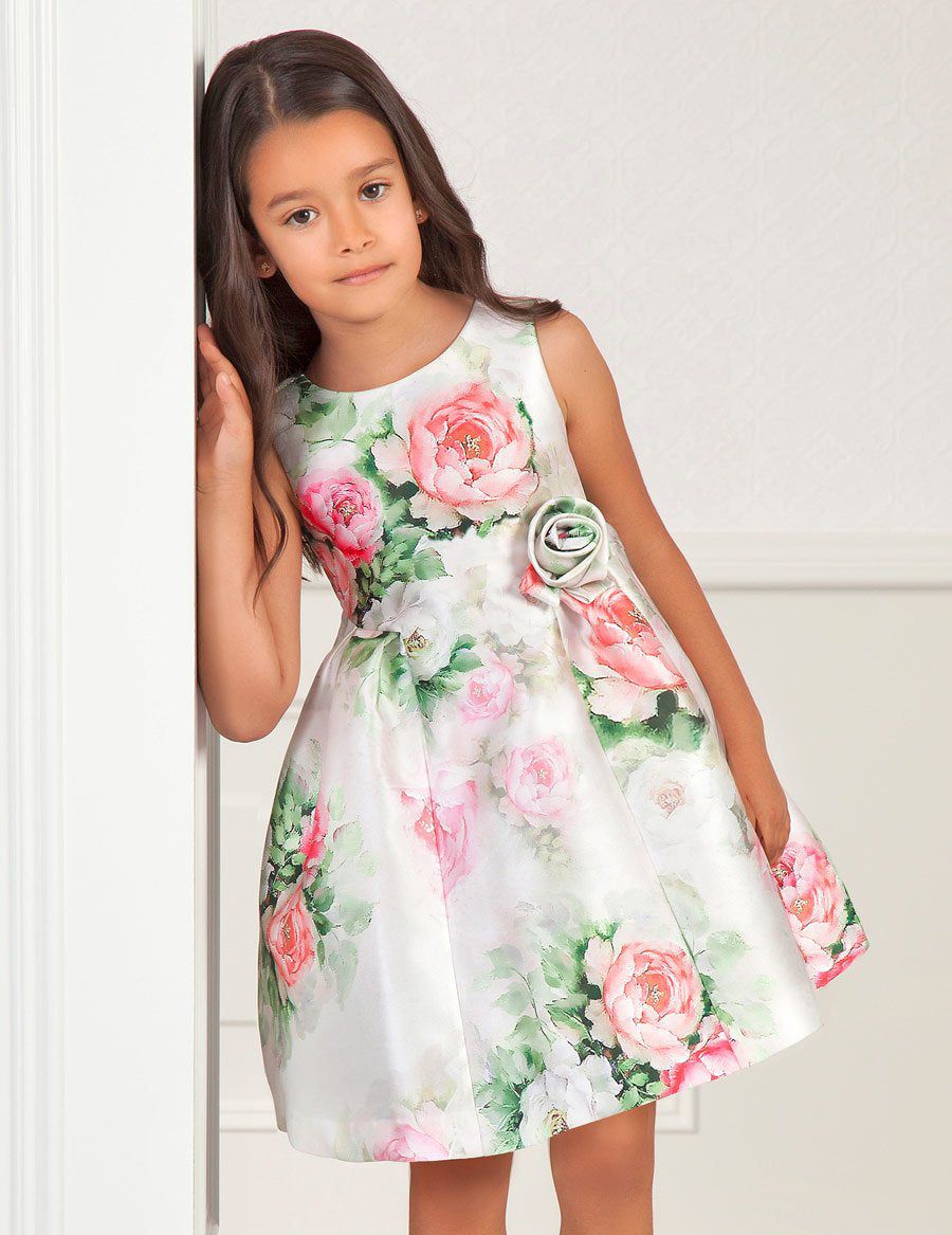 Abel & Lula Mikado Colorful Floral Printed Little Girl Dress
