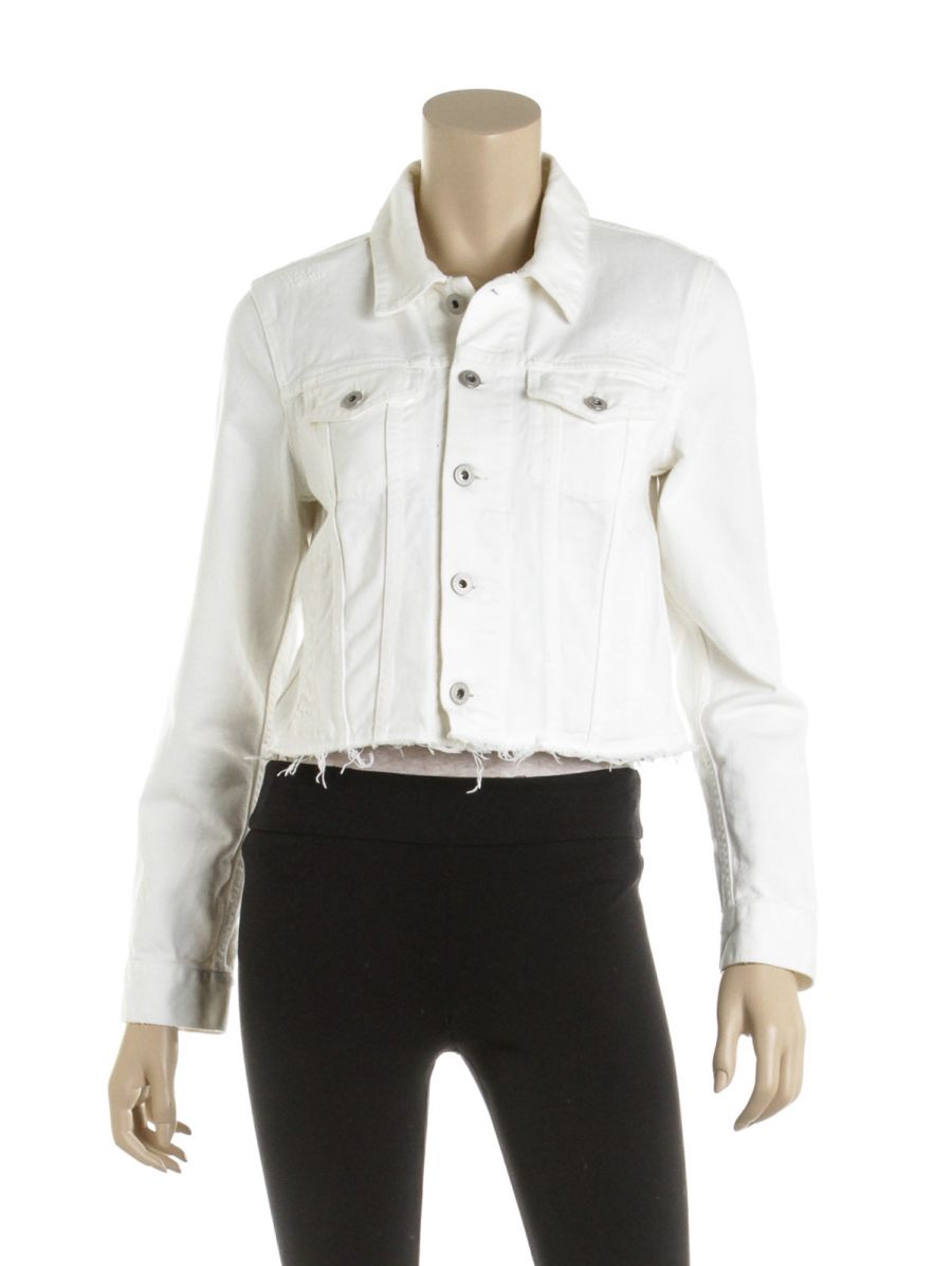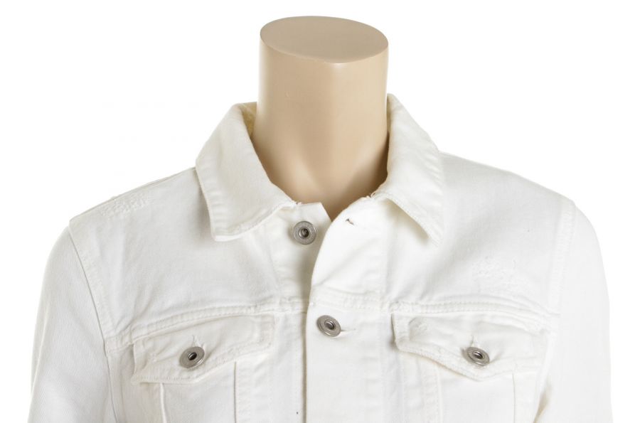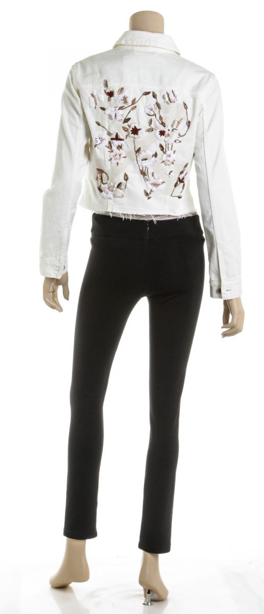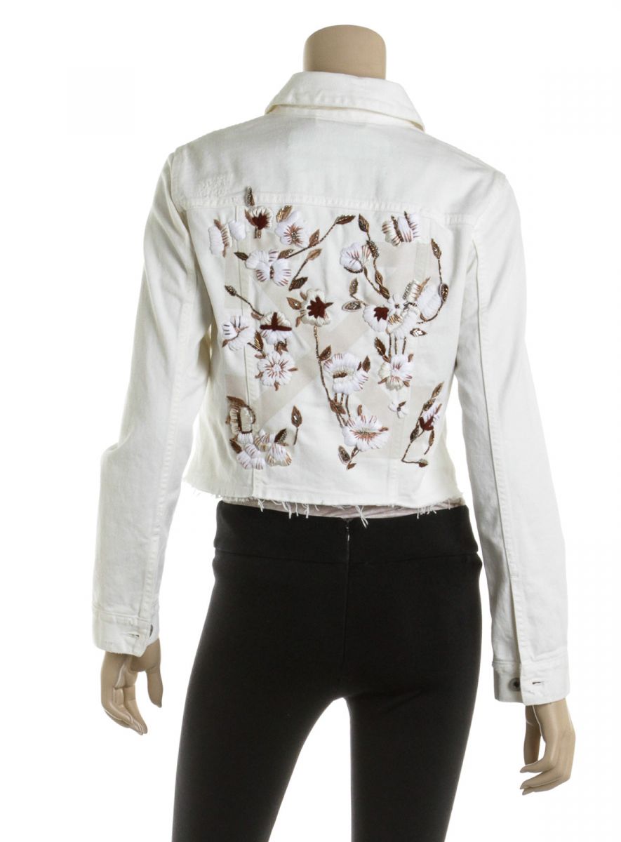 • Details: Off-White Cotton Distressed Denim and Floral Back Design Jacket
