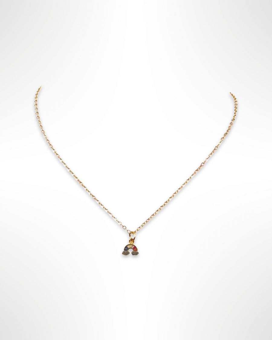 • Put a smile on her face with our Rainbow Necklace. This piece has colorful cubic zirconia gems in a fun rainbow setting centered on a gold-filled chain with an easy-to-grip lobster clasp closure.