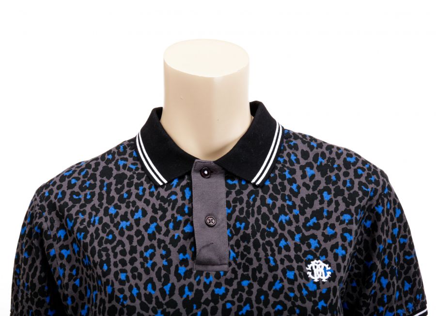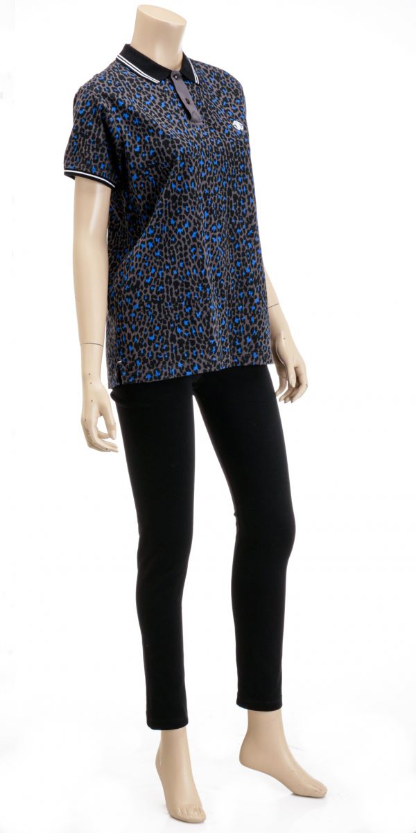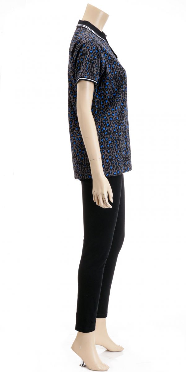 Roberto Cavalli Grey & Blue Cheetah Print SS Top