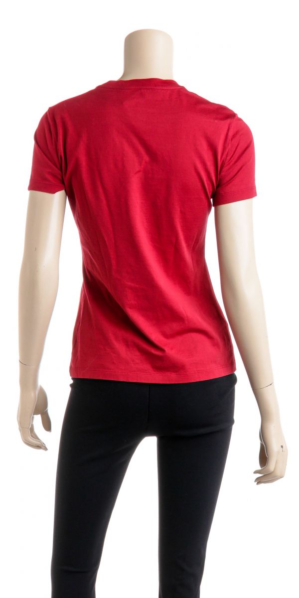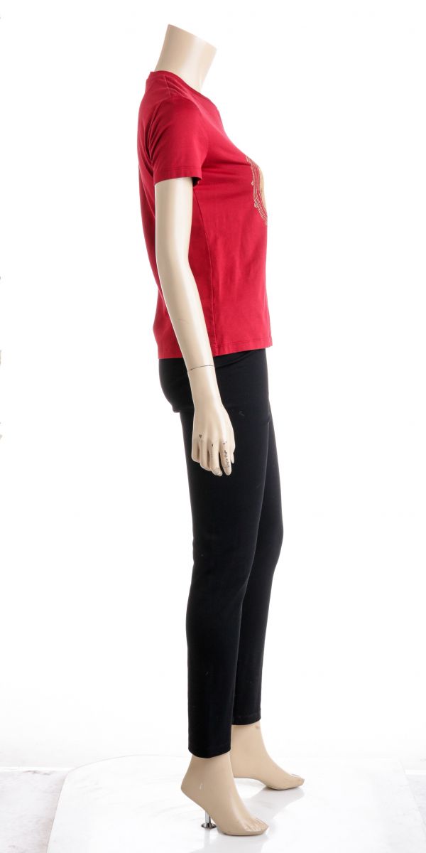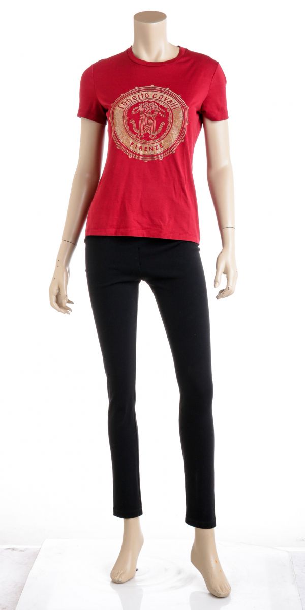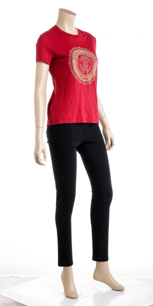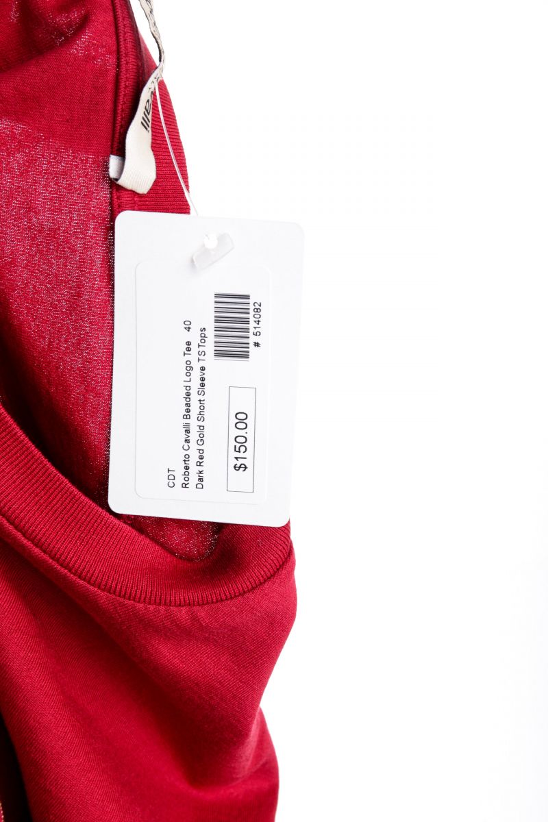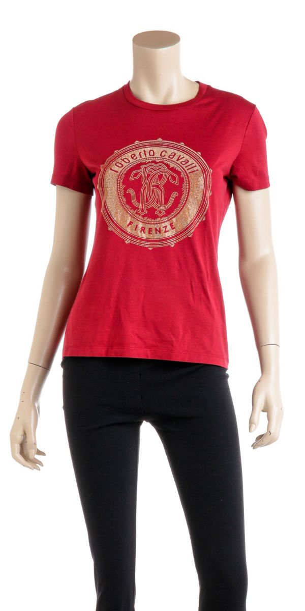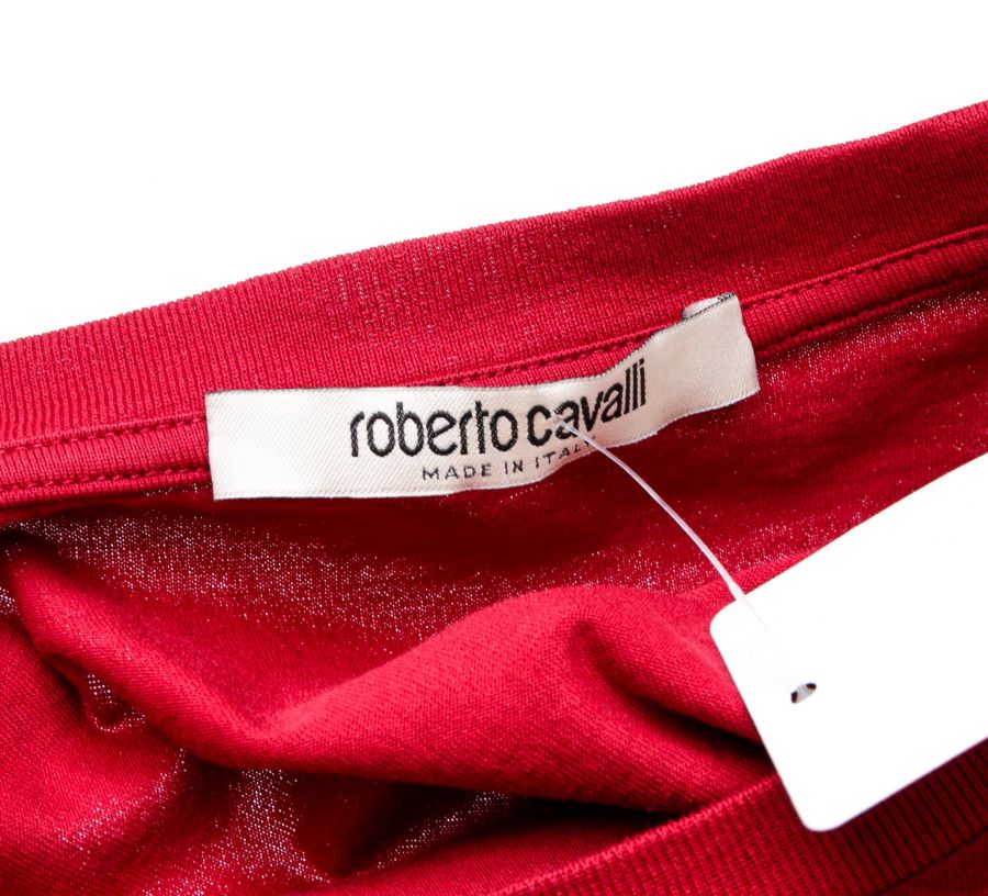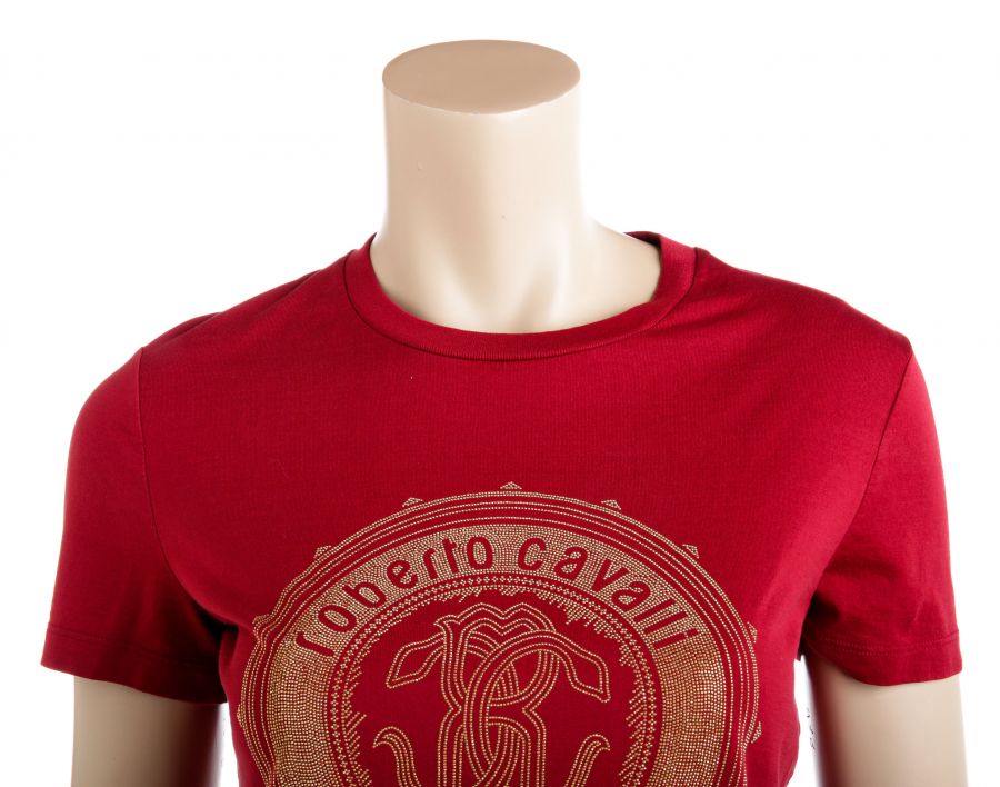 100% Authentic  Roberto Cavalli Red Cotton Beaded Logo T Shirt ...
