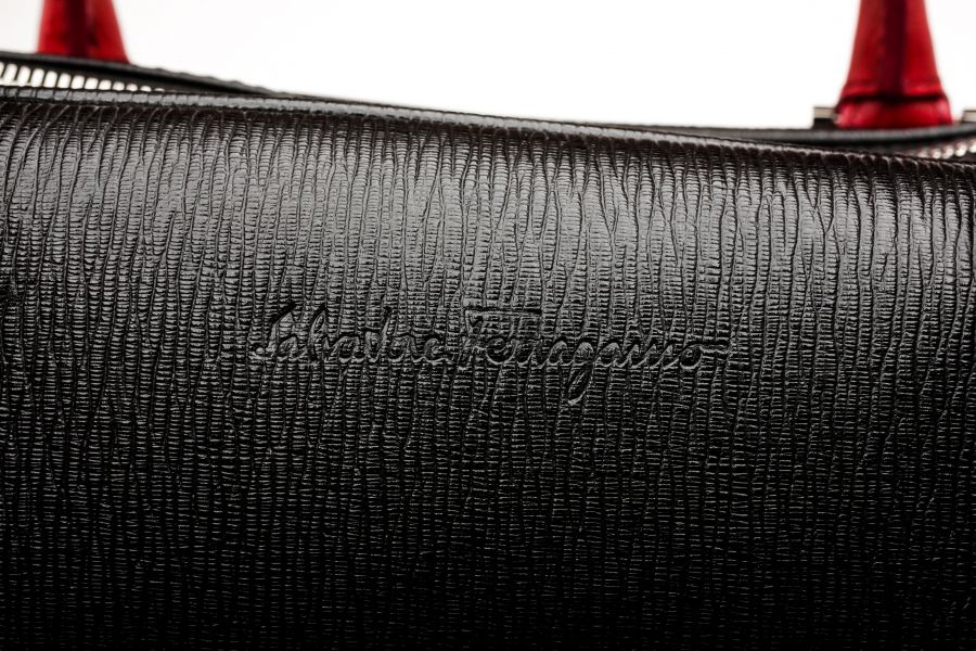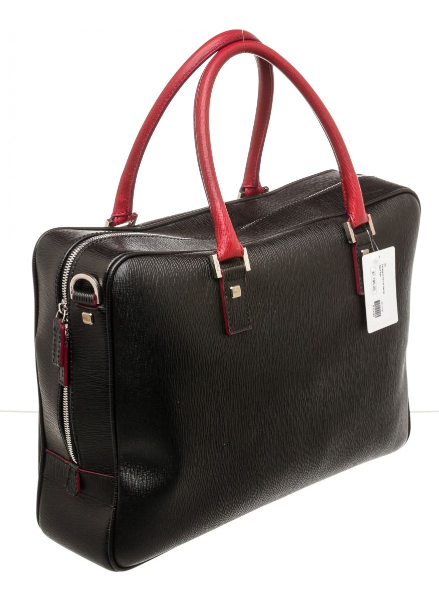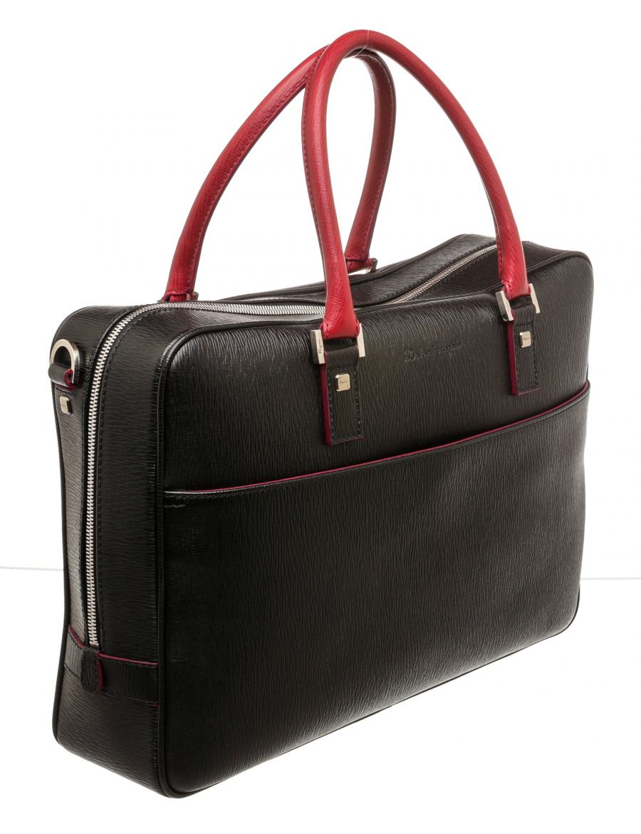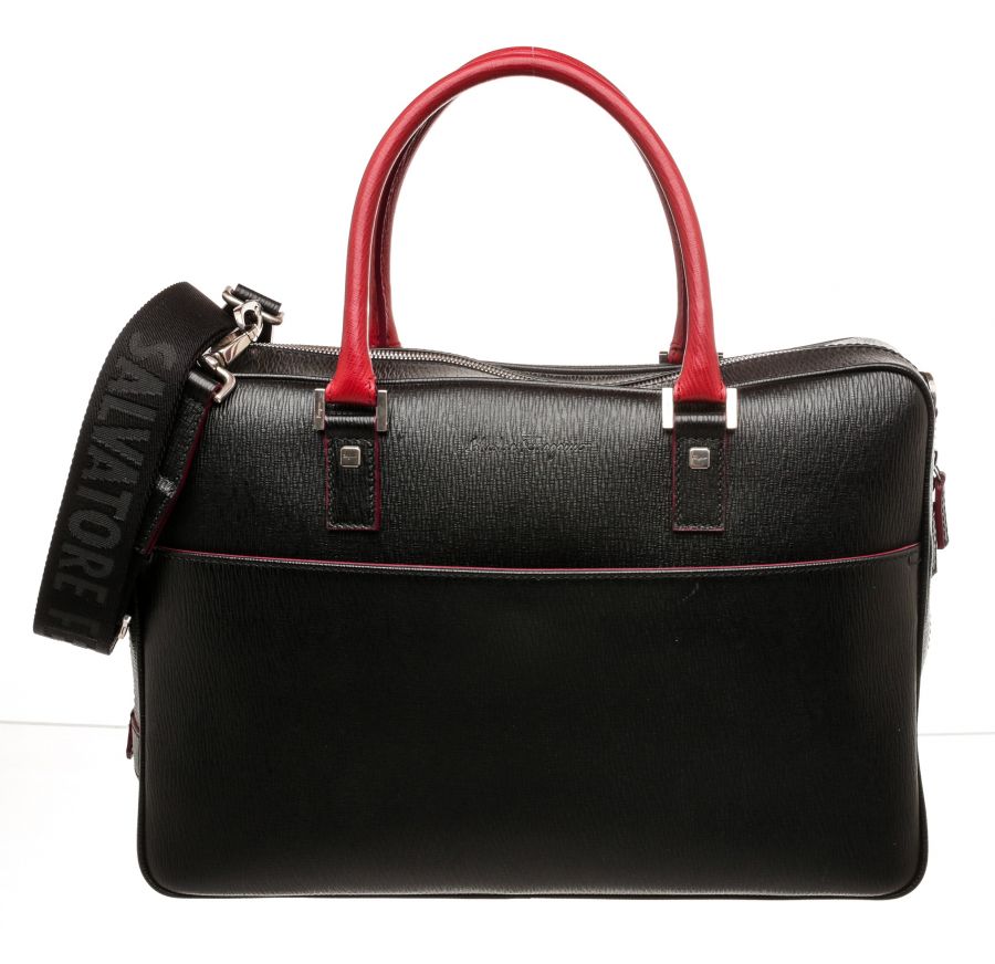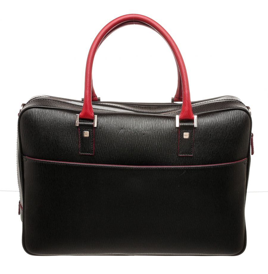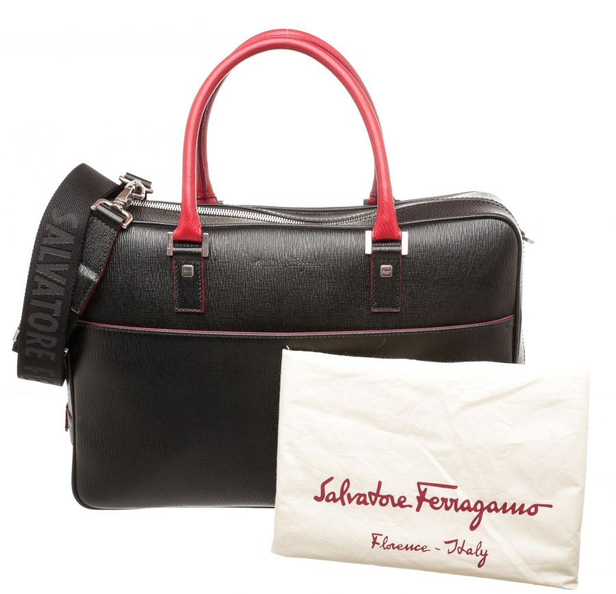 This Salvatore Ferragamo Revival two tone briefcase is designed in calf leather featuring embossed logo at front, contrast rolled double handles, adjustable and removable shoulder strap. The interior is lined in cotton. Made in Italy