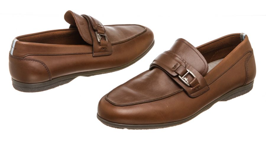 • Details: Brown Leather Men's Buckle Strap Loafer