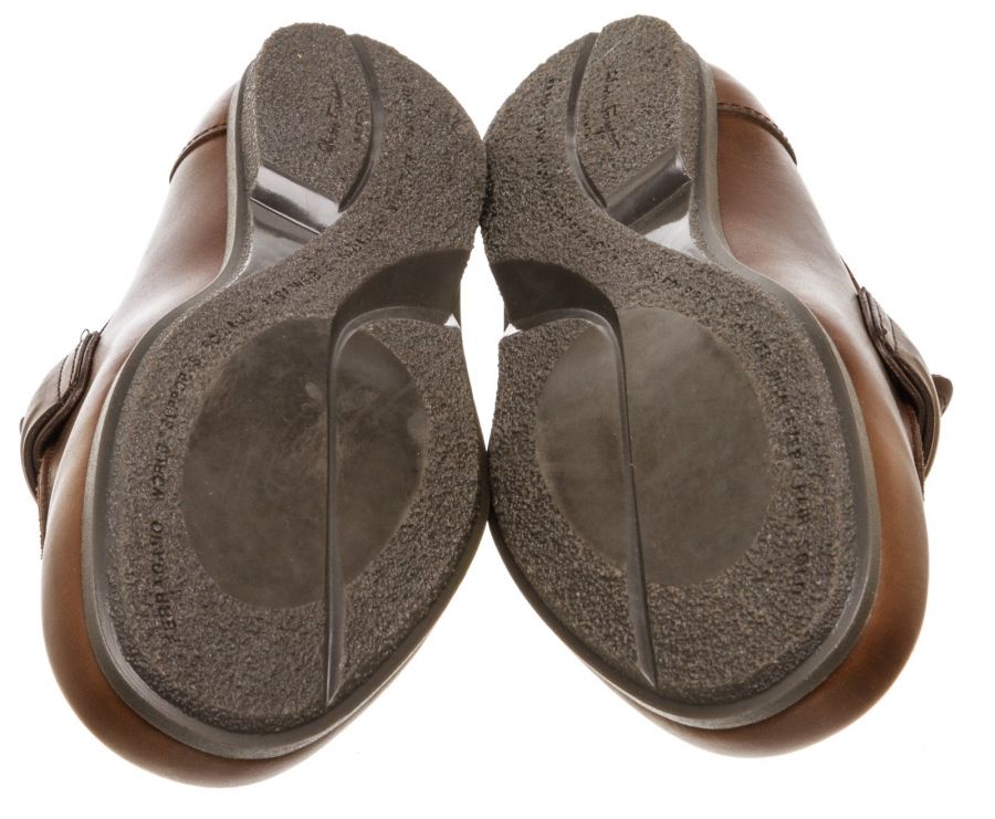 Salvatore Ferragamo loafers in brown leather featuring a strap and buckle on the top and rubber soles. RC 492245 CR 7.31.19