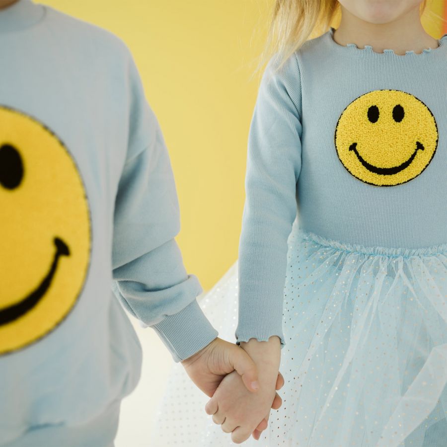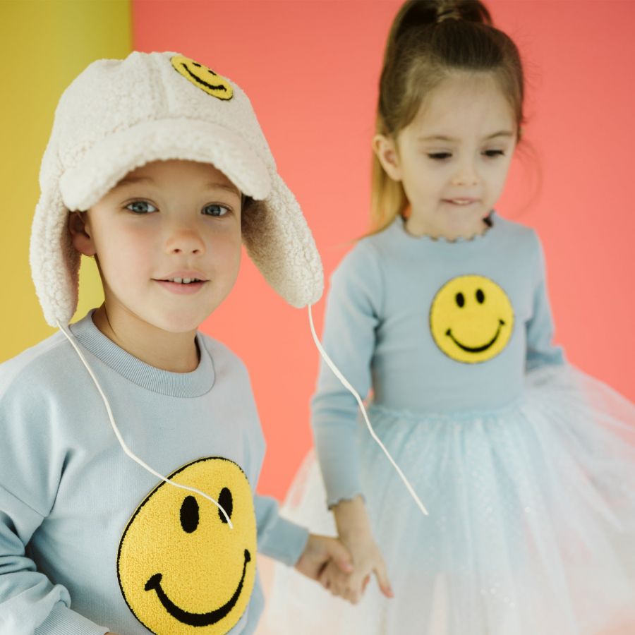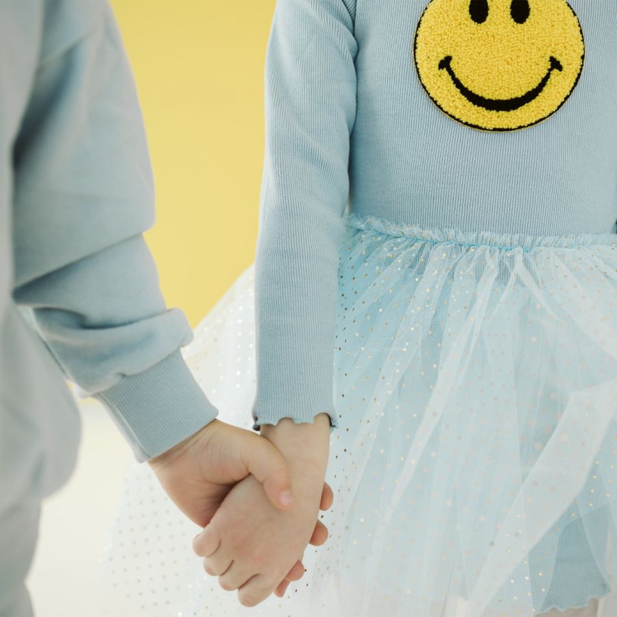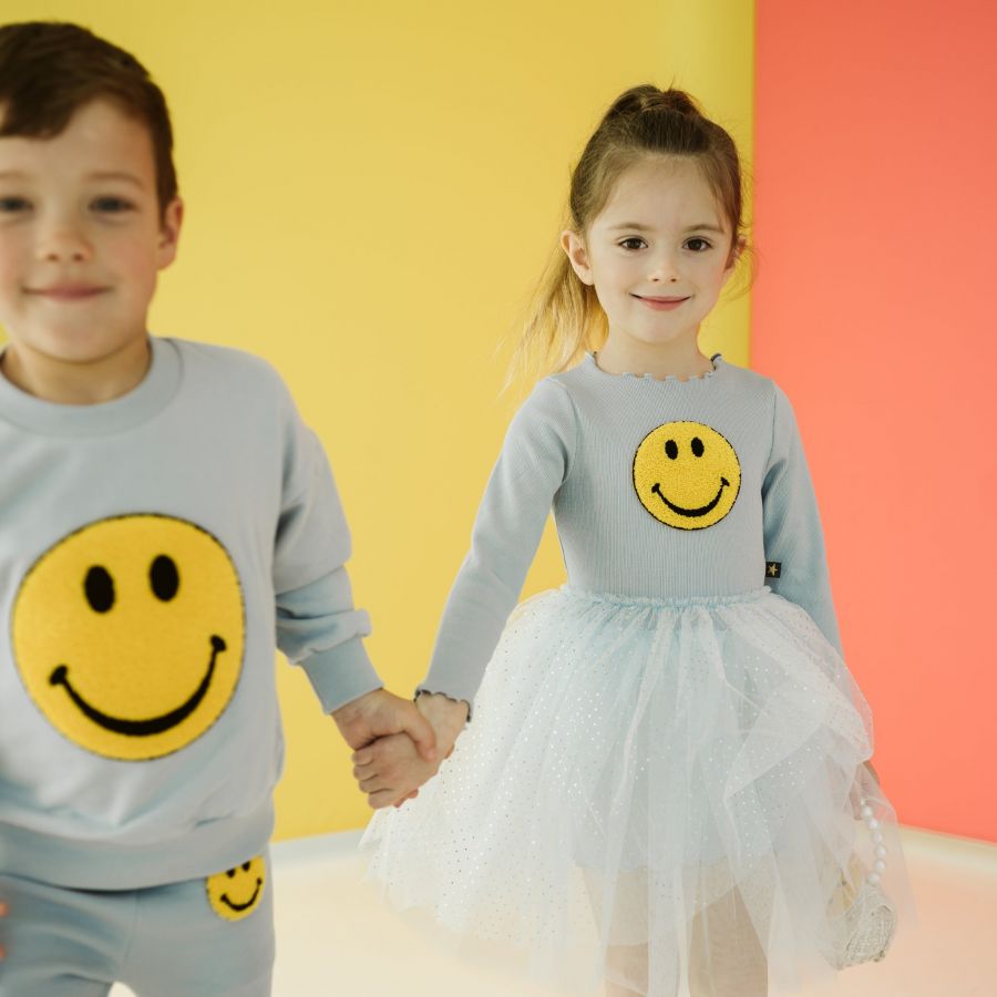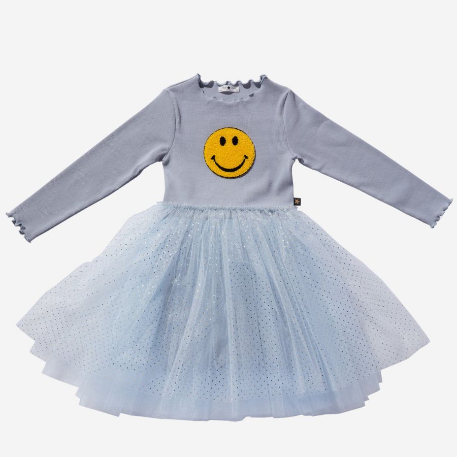 • Please give her a lightweight, breezy, stylish outfit with our Smile Tutu. This dress comes in a Cream, Dark Pink, Black, and Sky Blue color with a ribbed top, a knee-length tulle skirt, and decorated with gold sparkles. With the detail of the tulle, this dress will be a great addition to her Fall wardrobe. This tutu is also a perfect match with our Smile Hello Tote or pairs it with our Patent MaryJane Shoes, Smile Ear Hat, or Smile Beanie.
