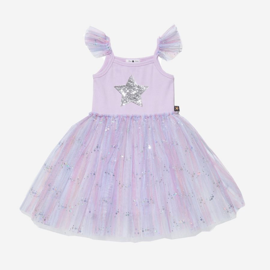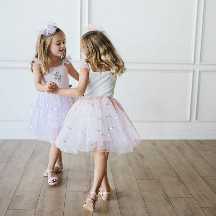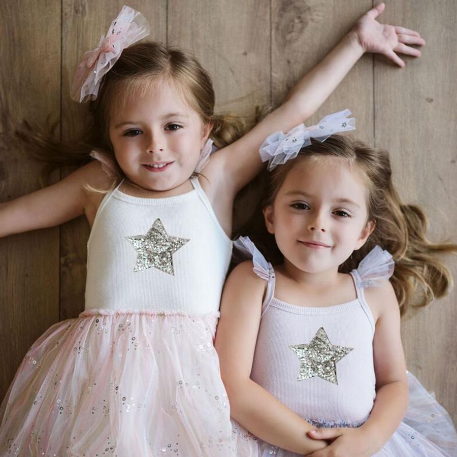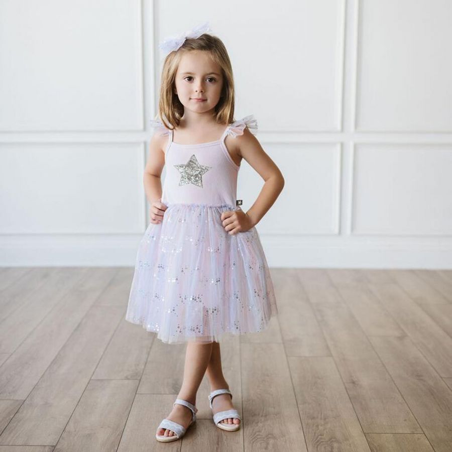 • Add shiny appeal to your darling's outfits with this Spangle Tutu Dress. The dress is made withrib knit andspangle tulleto make it the perfect choice for any occasion. It is adorned with a silver star in front. Designed from a soft and stretchy fabric for a comfy relaxed fit.