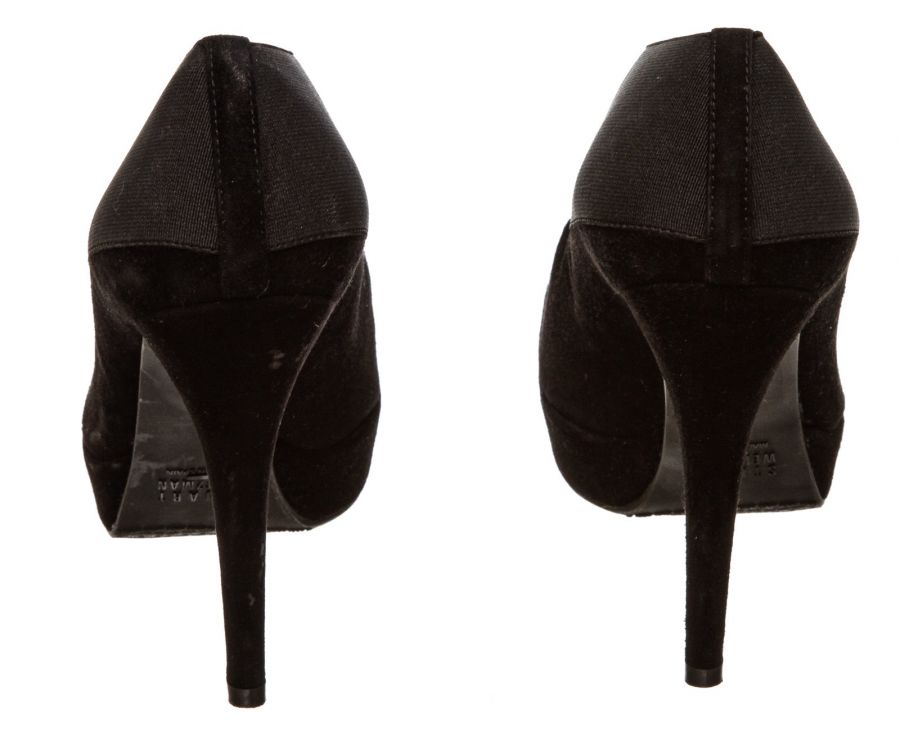 Stuart Weitman Black Suede Elastic-Trim Ankle Bootie (Size 6.5)