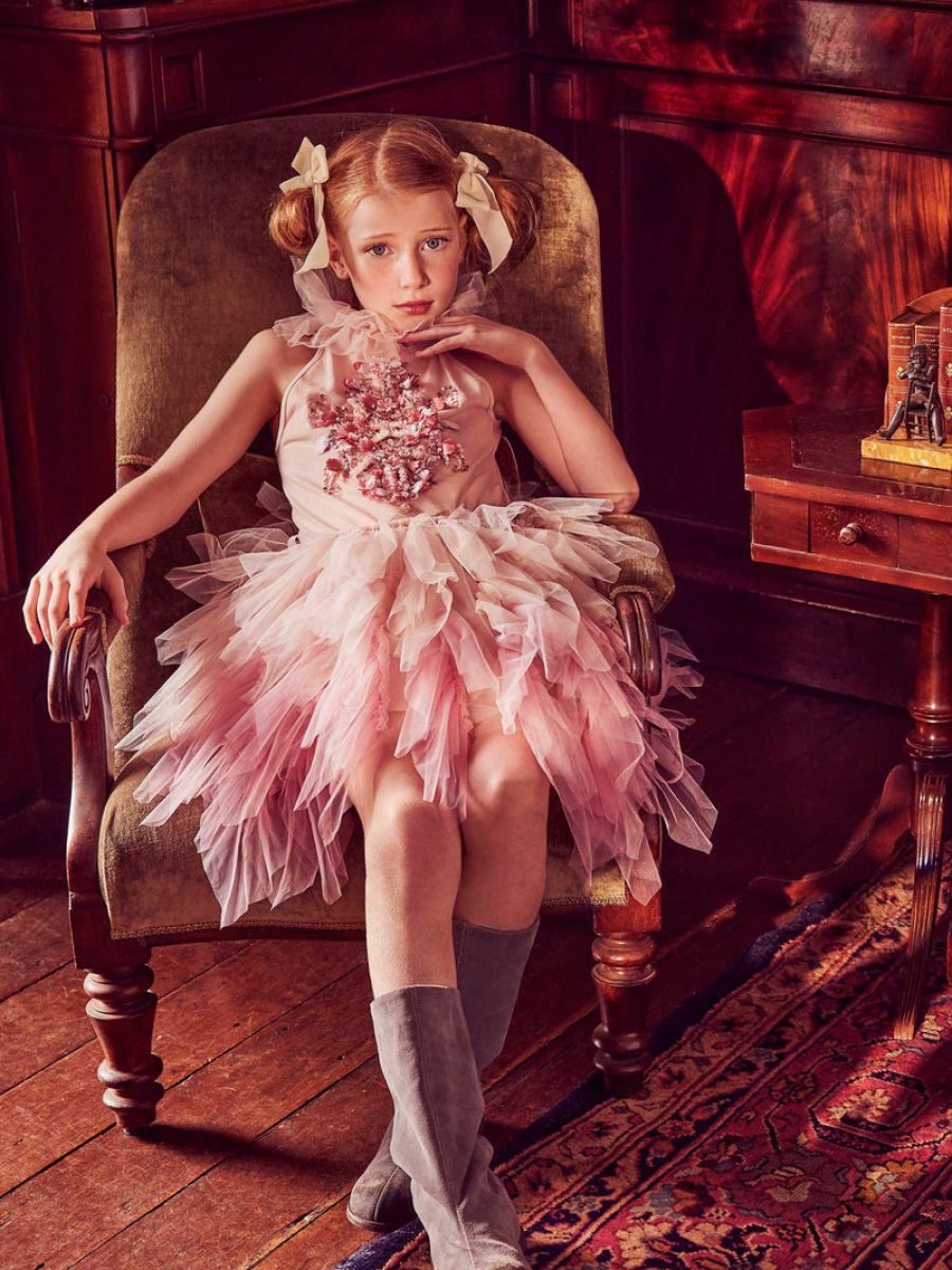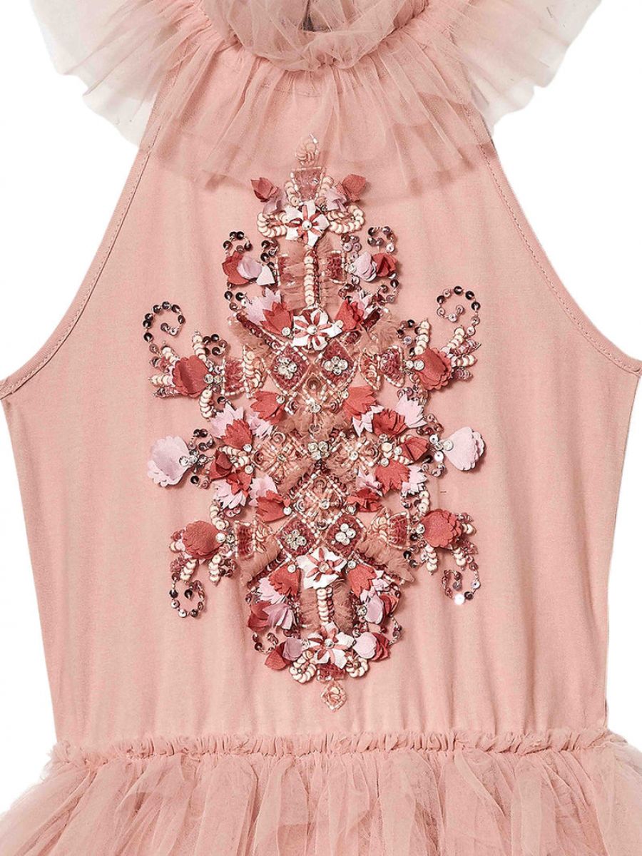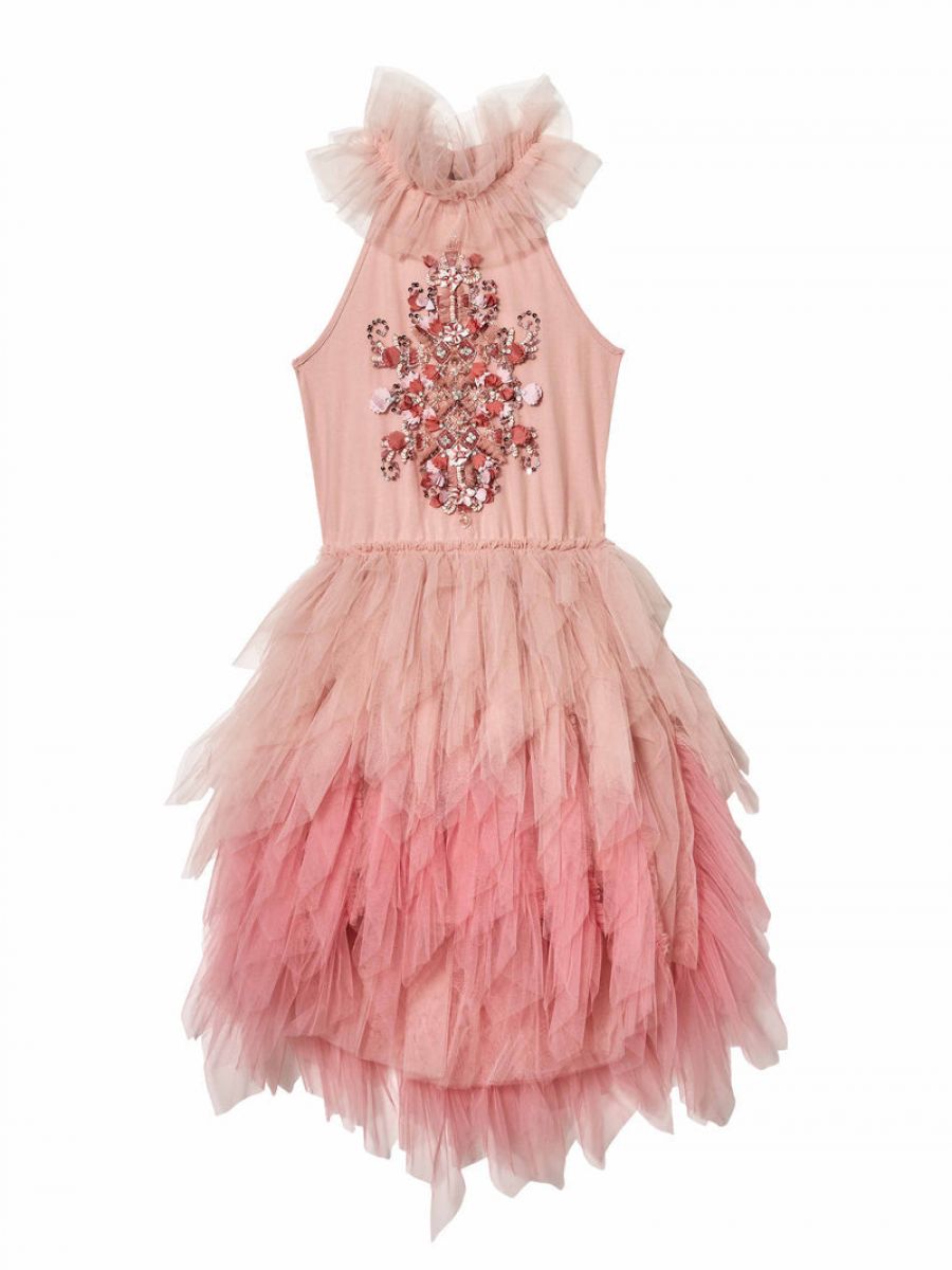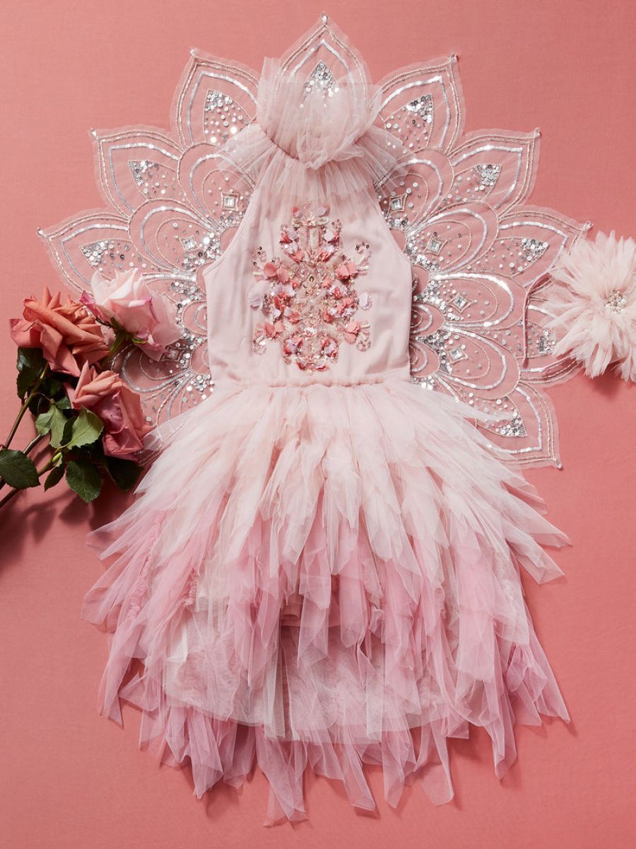 • Sway and dance away in the lavish Anastasia Tutu Dress in Hazel Pink Mix. This beautiful dress features a tank-style halter bodice with an elaborate mixture of fine embroidery, satin blooms and winding rose gold sequins for added fun and thrills.
