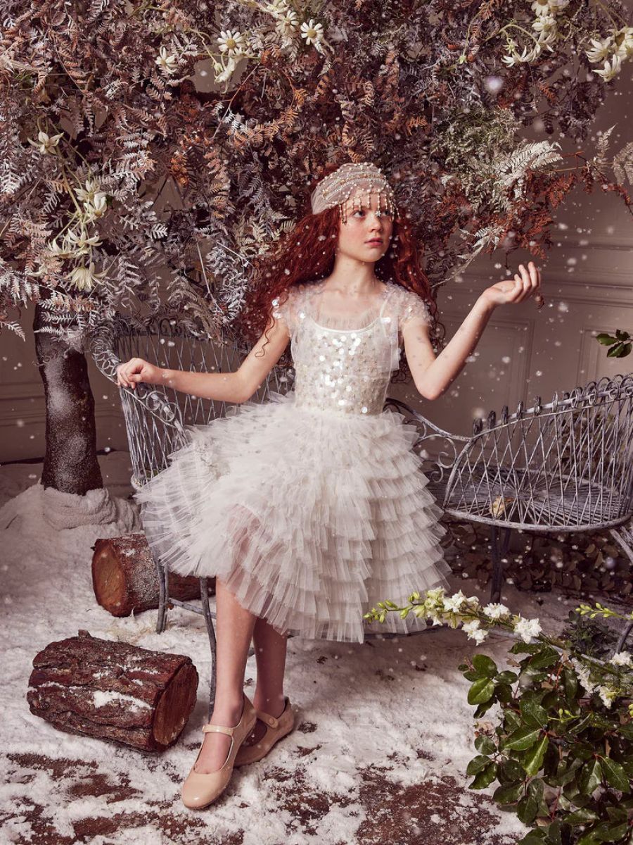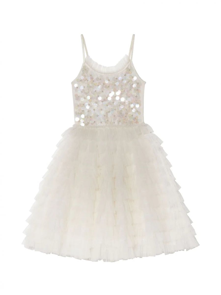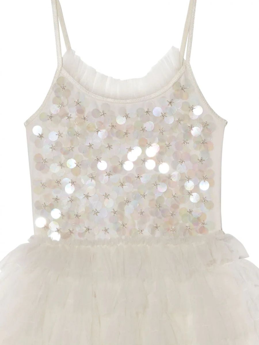 • Dazzle and delight in the Shine Bright Tutu Dress! A dashingly bejewelled bodice on a stretch cotton bodice features iridescent sequins and beads to replicate a frosty bouquet.